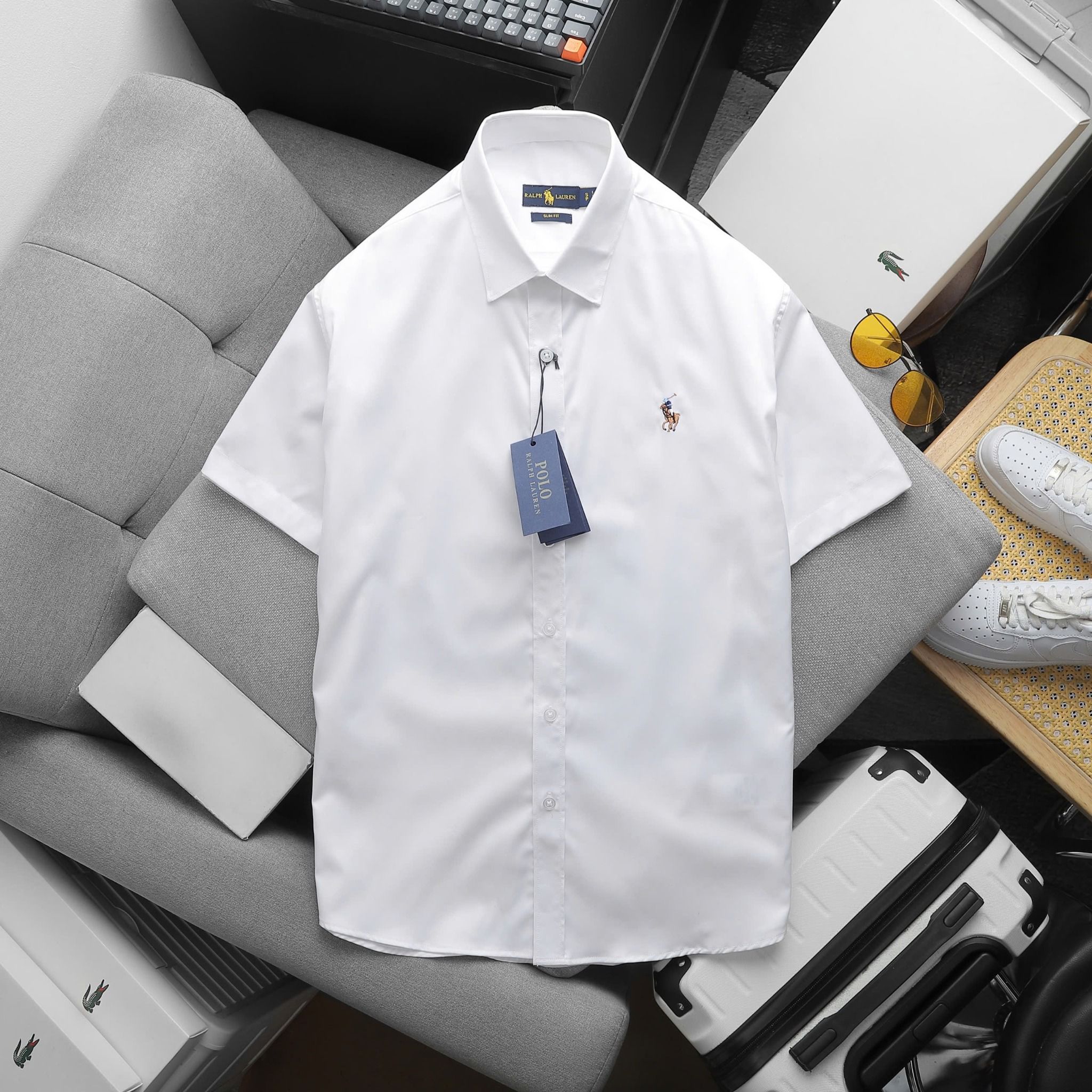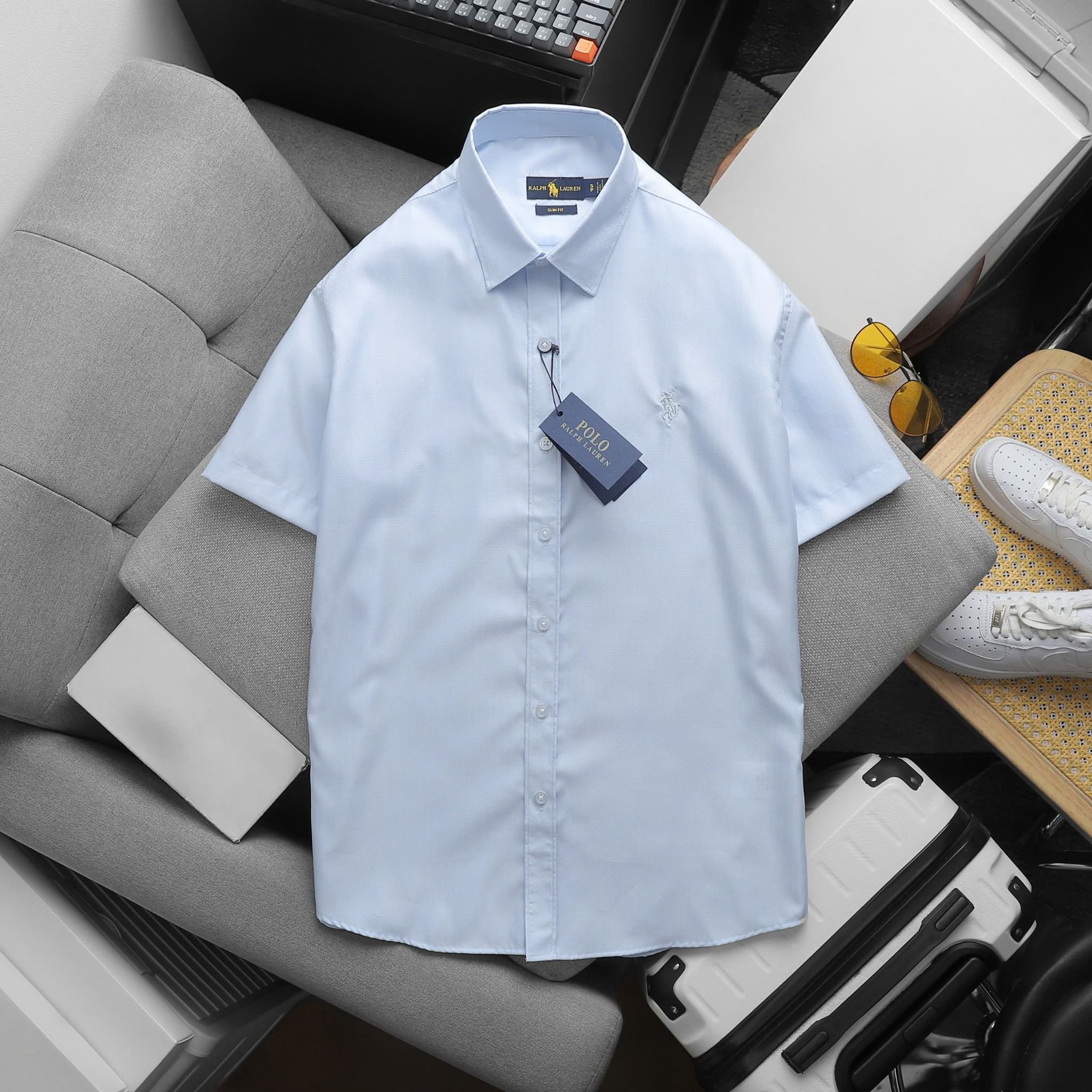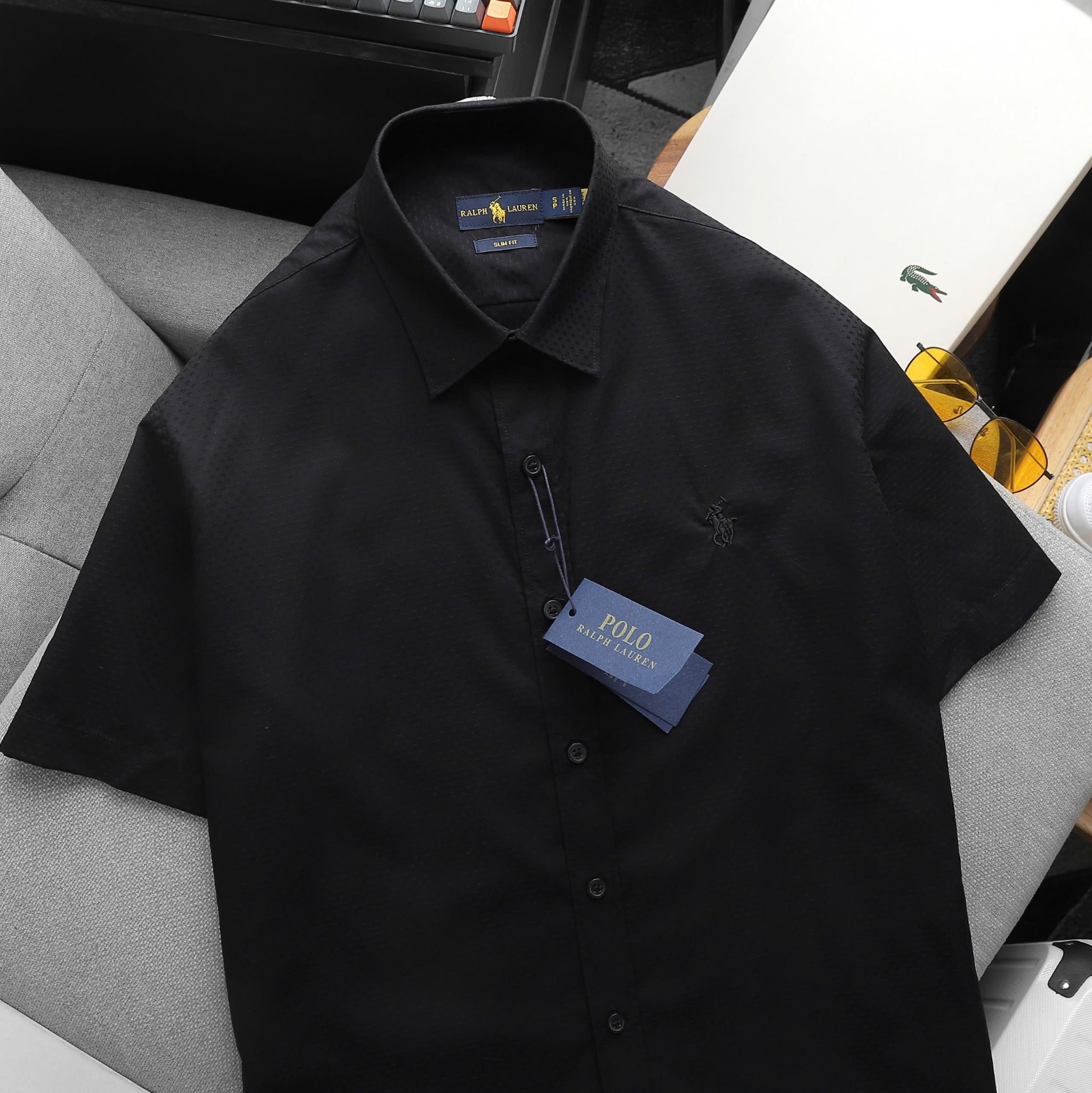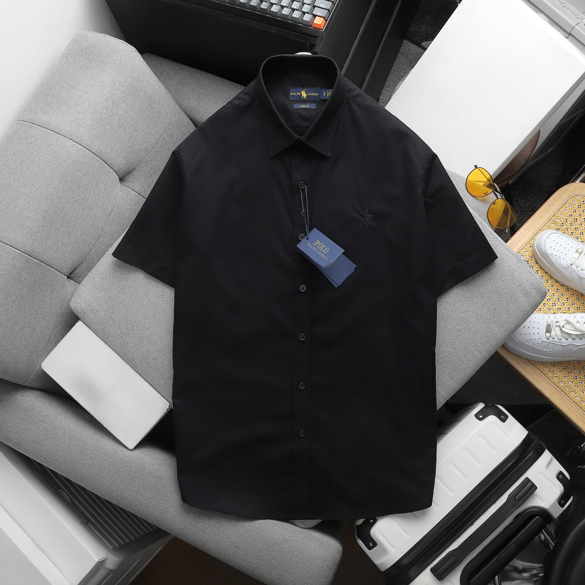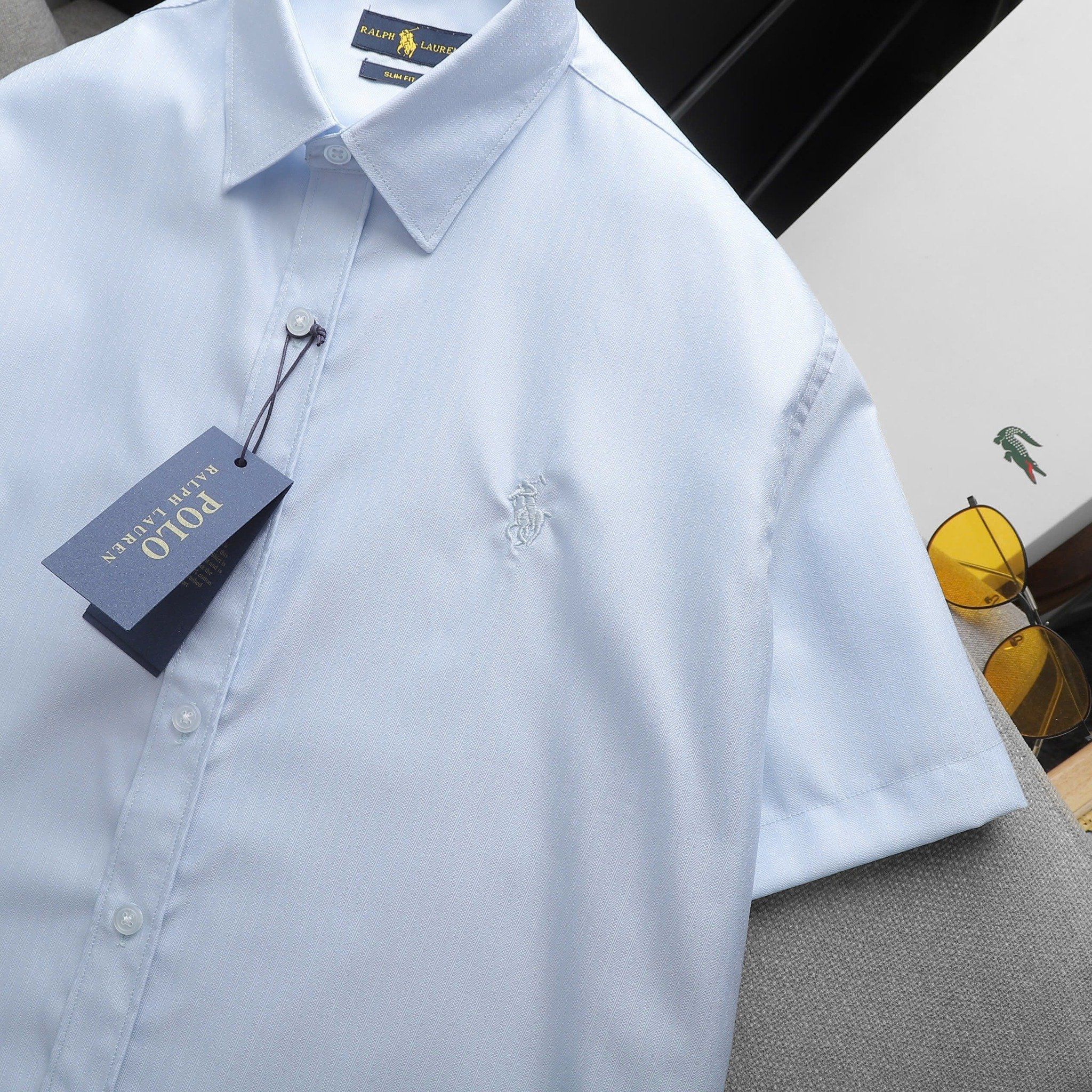 Áo Sơ Mi Nam Tay Ngắn Cộc Tay BASIC POLO RALPH LAUREN Cổ Sơ Mi Hàng Xuất Xịn Cao Cấp Form SlimFit Vải Gân Kim