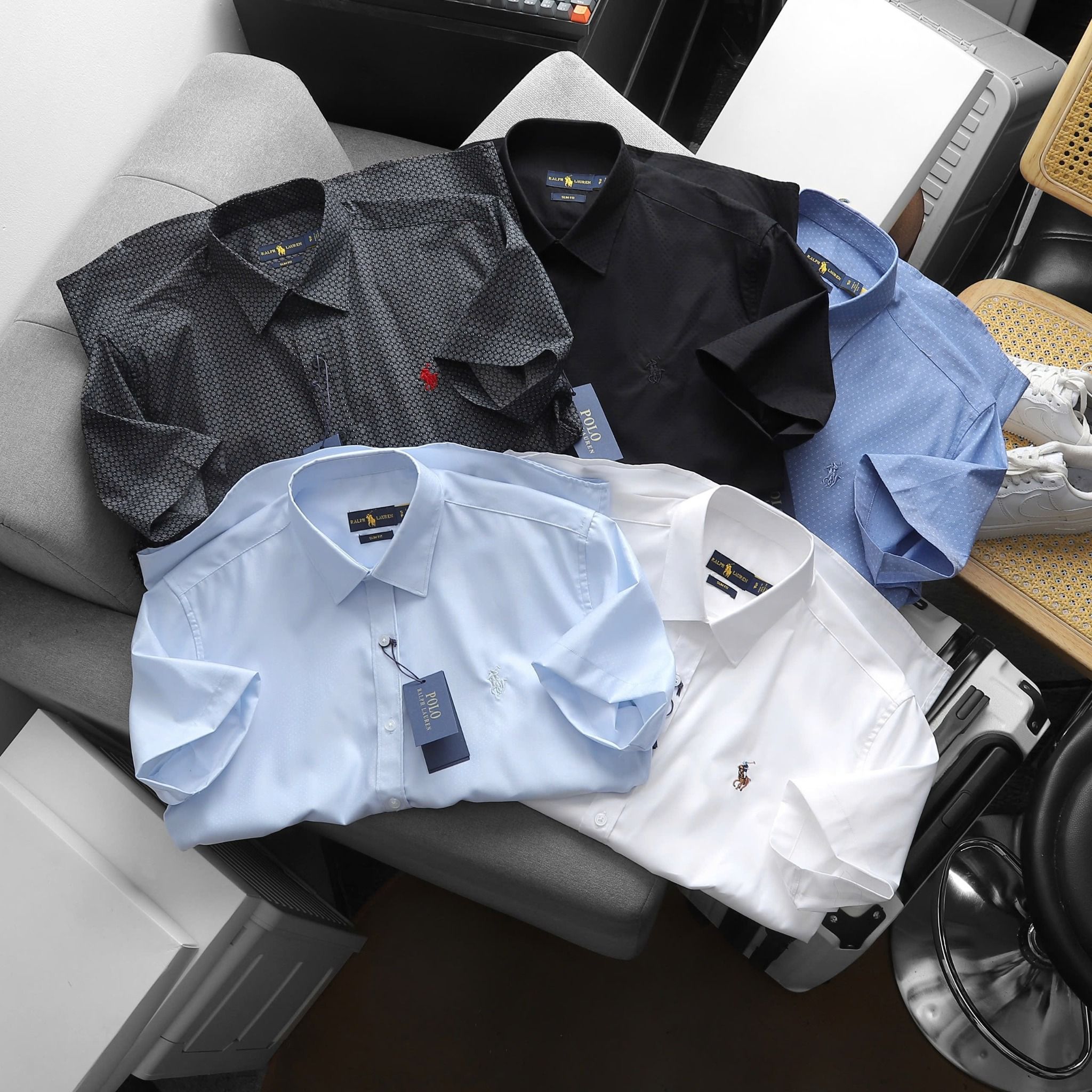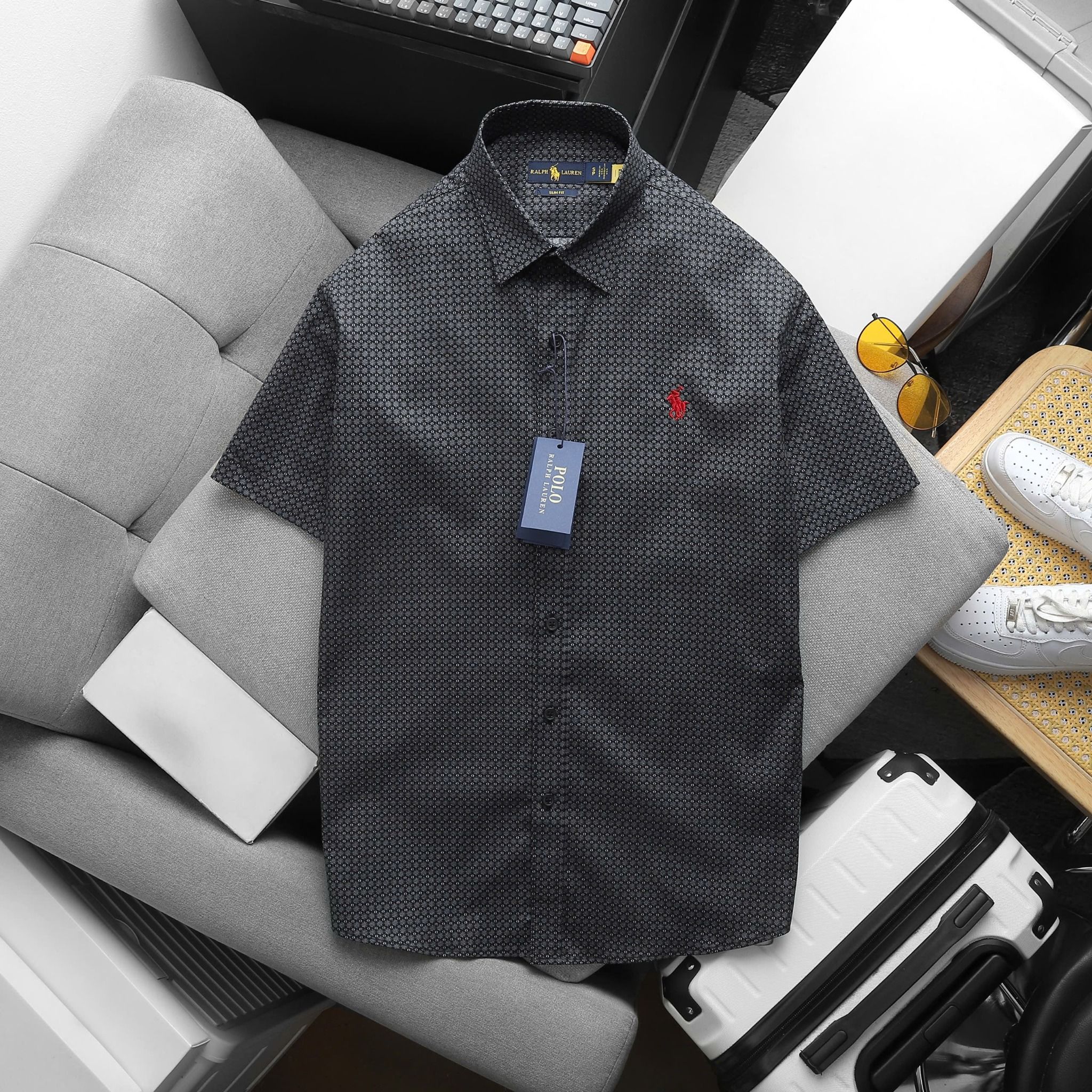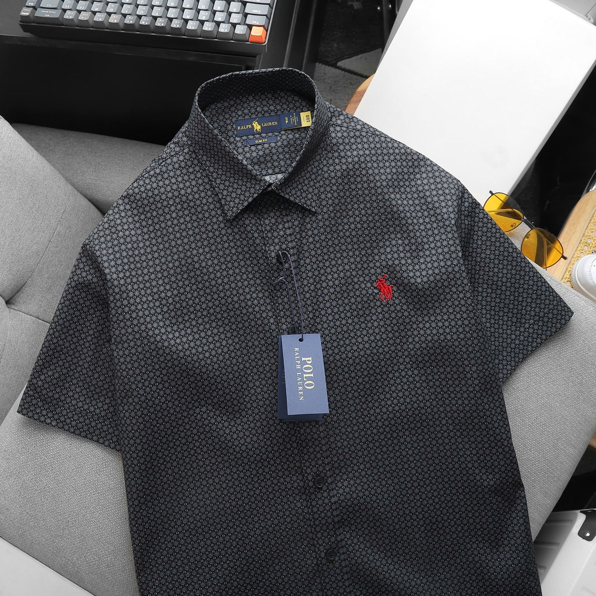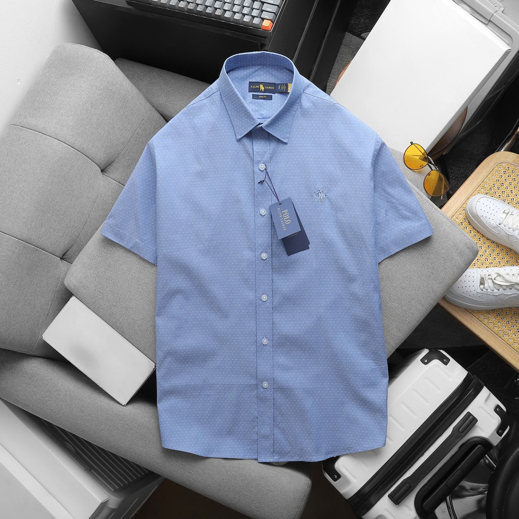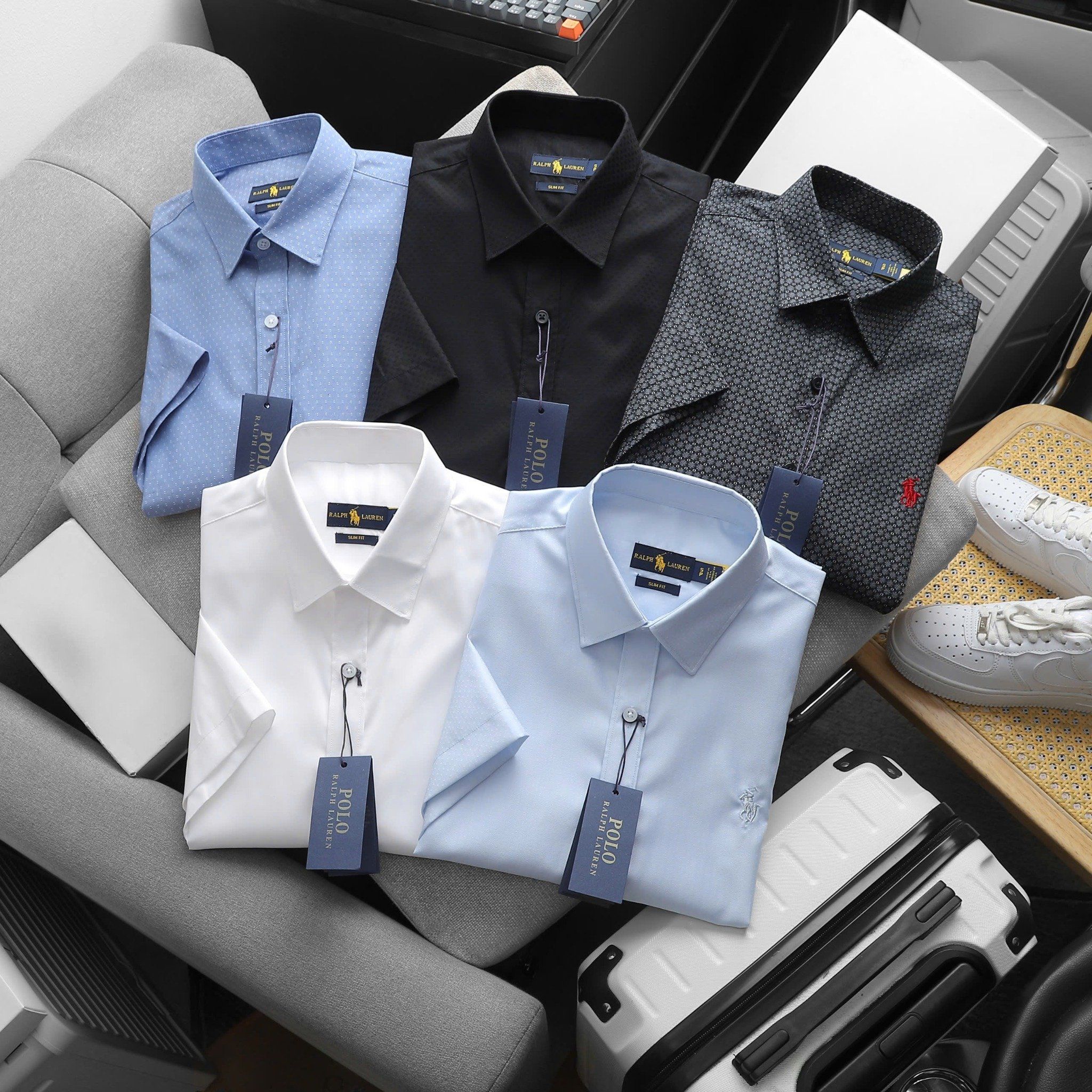 Áo Sơ Mi Nam Tay Ngắn Cộc Tay BASIC POLO RALPH LAUREN Cổ Sơ Mi Hàng Xuất Xịn Cao Cấp Form SlimFit Vải Gân Kim