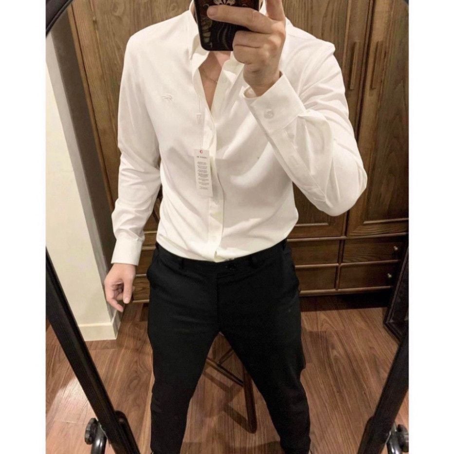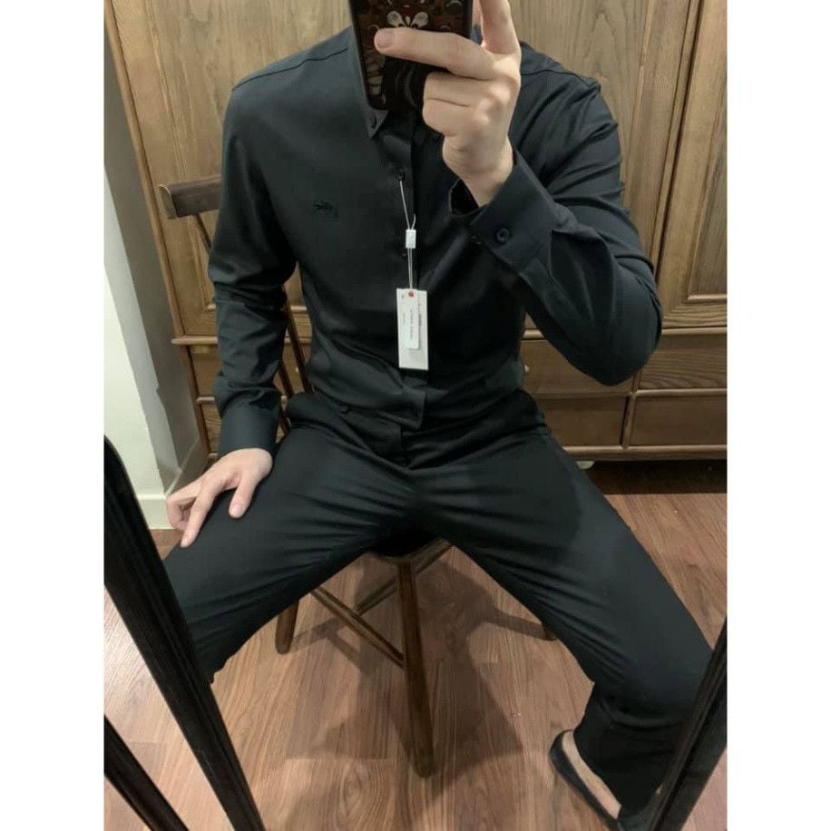Áo sơ mi tay dài Không Túi Cổ Khuy LCST LOGO THÊU VẢI COTTON LỤA HIẾM 6 MÀU siêu sang hàng xuất xịn