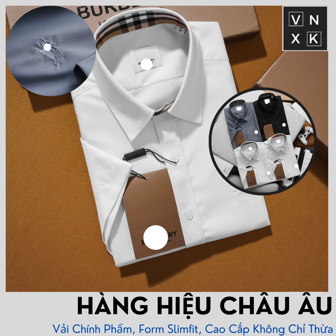 Áo sơ mi tay ngắn Không Túi Trẻ Trung BURBERRY 3 MÀU siêu sang Khuy Nút khắc Full Pack Cao Cấp làm quà tặng cực sang