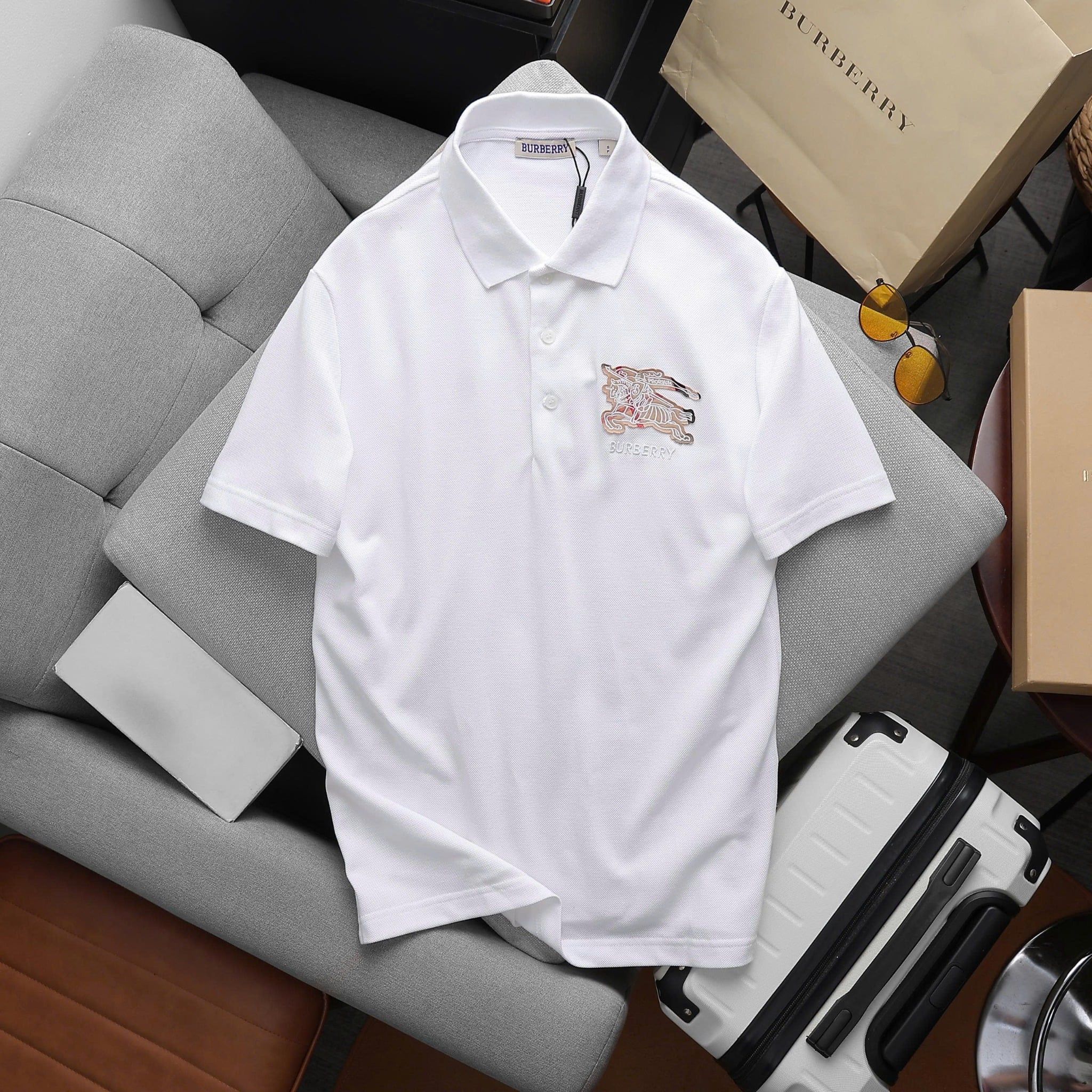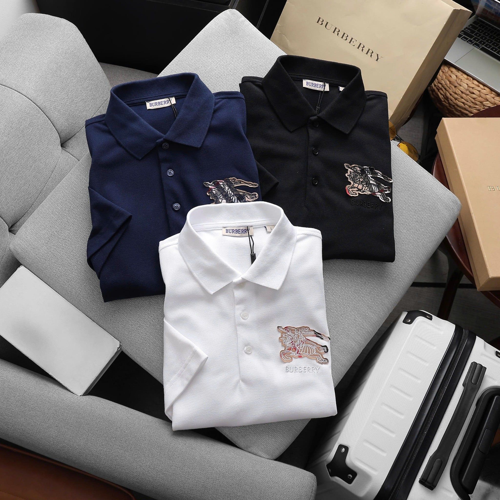 Áo Thun Nam Polo BURBERRY LOGO Ngựa Thêu 3 MÀU Form Regular-Fit Vải Dệt Tơ Cao Cấp Sang Trọng