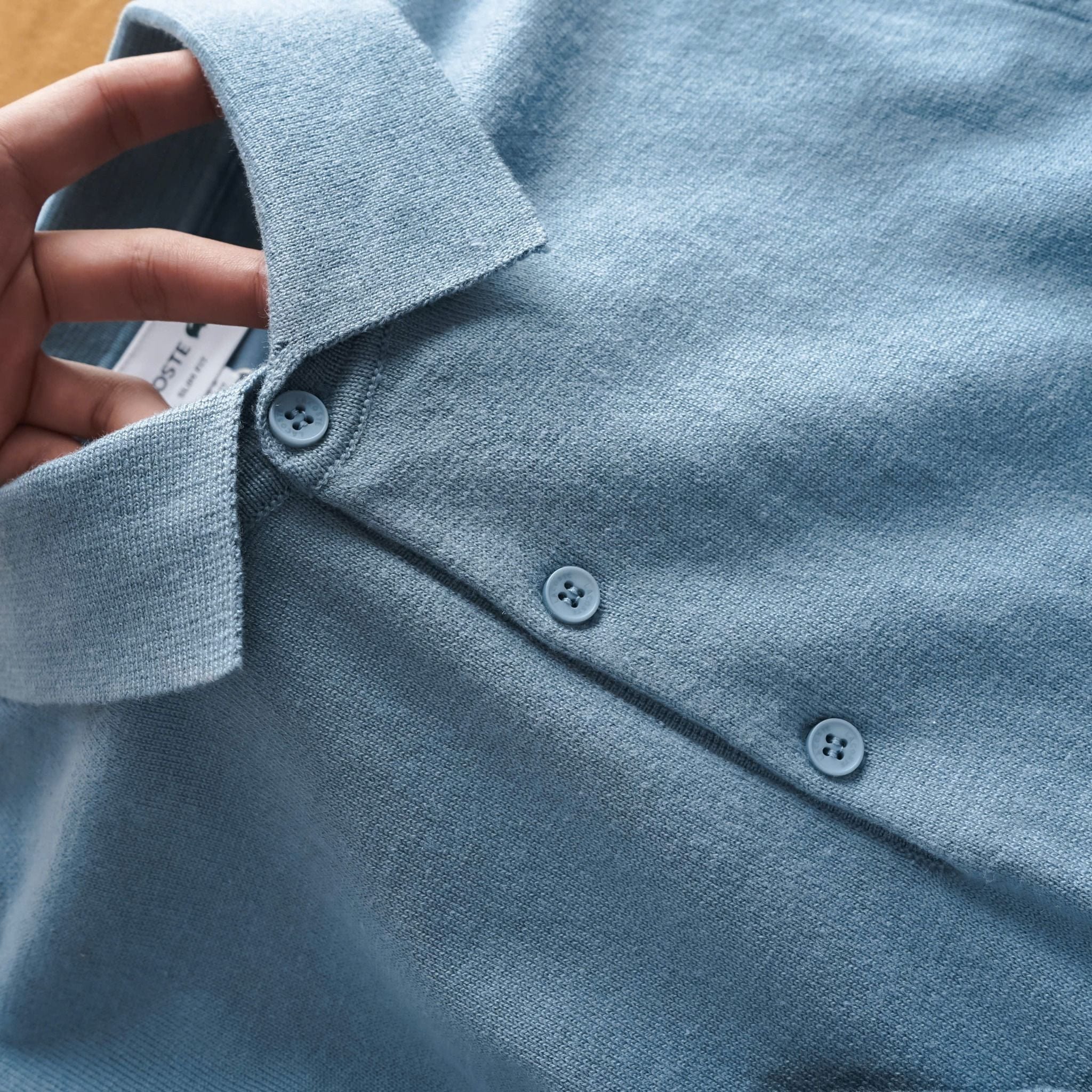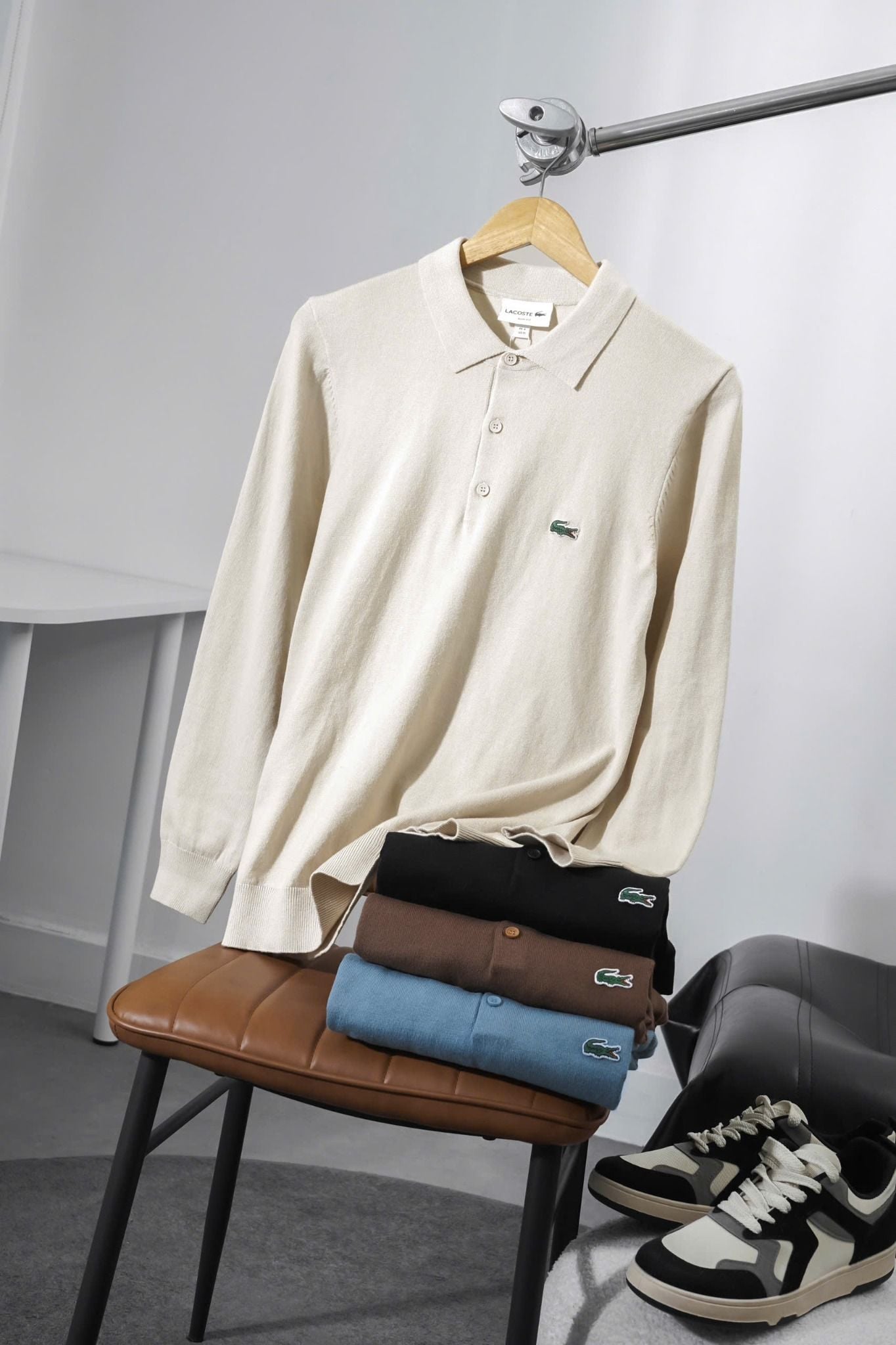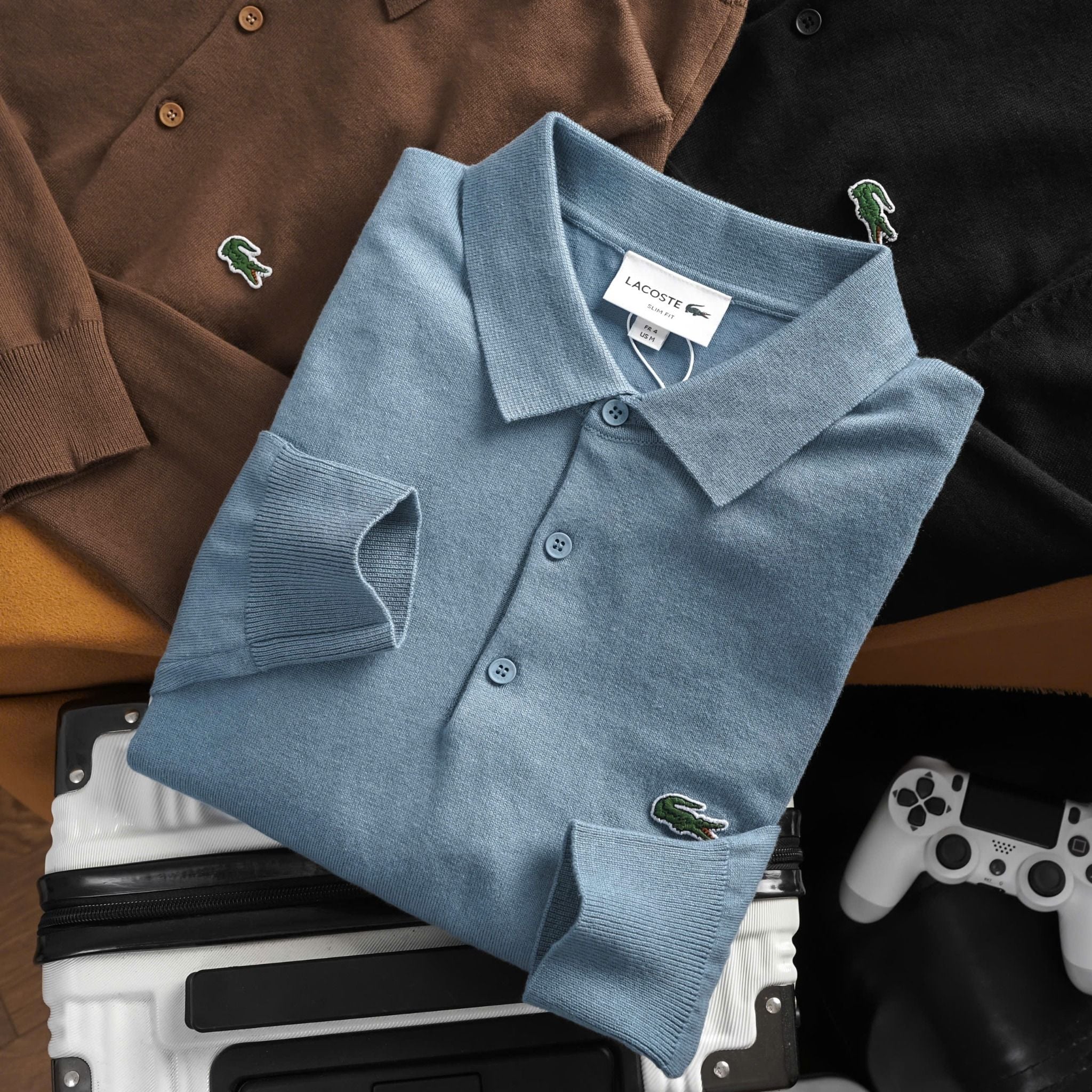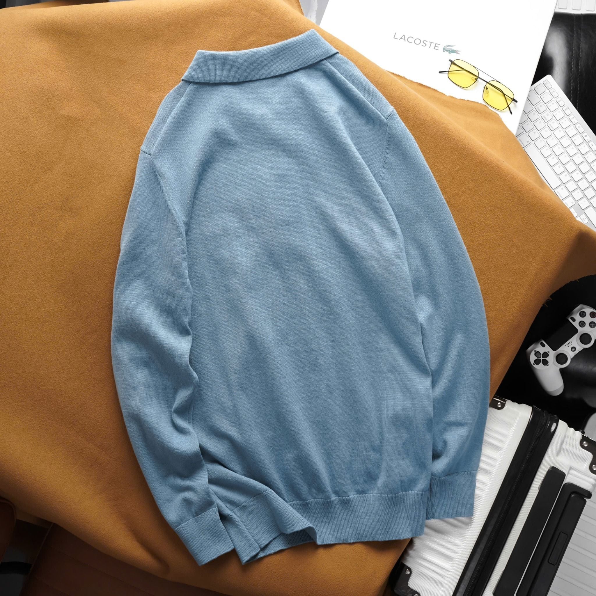 Áo Thun Nam Polo Len Tay Dài LCST Cá Xanh Trơn Basic Thu Đông Vải Len May Không Mối Nối Hàng Hiệu Hiếm Xin Có Big Size