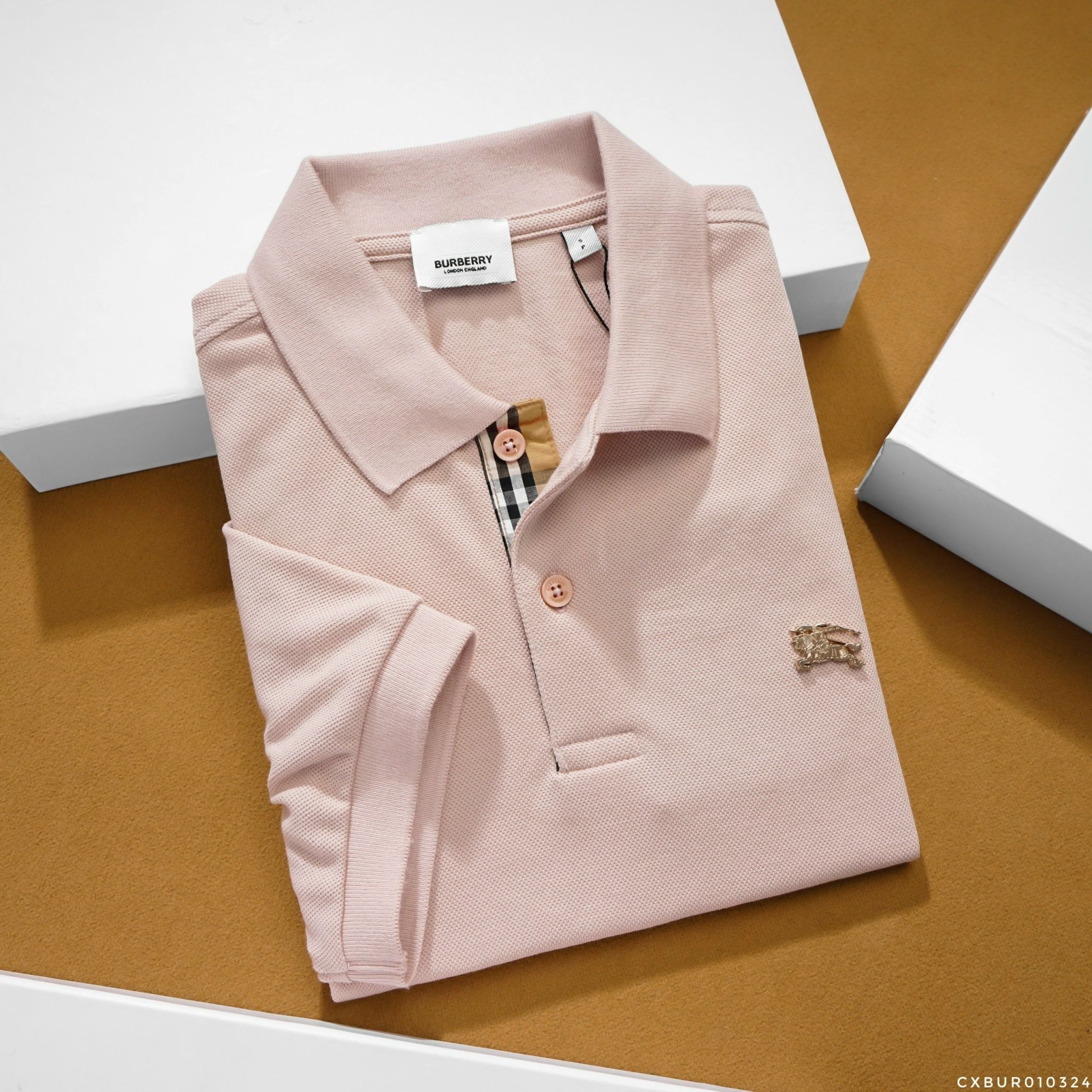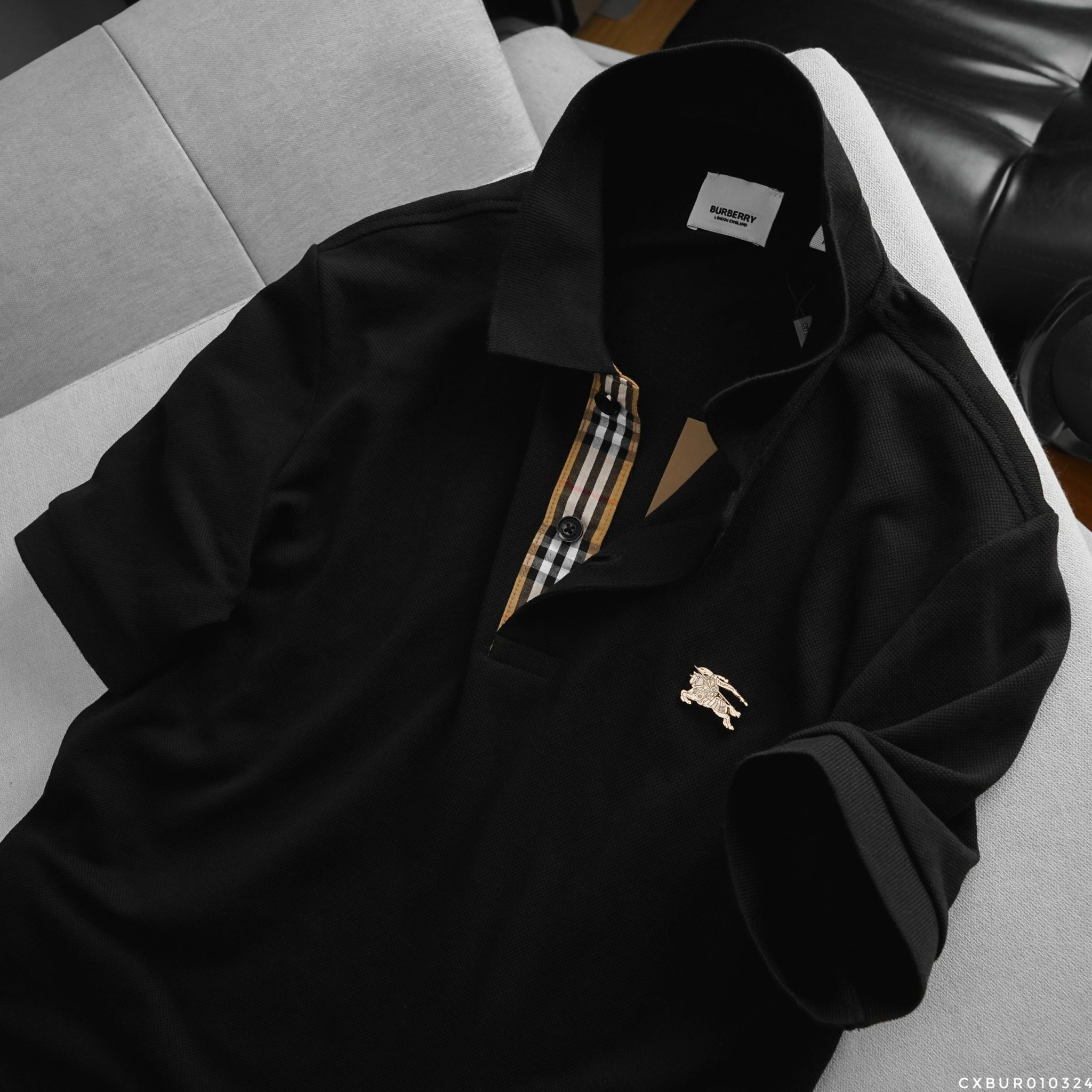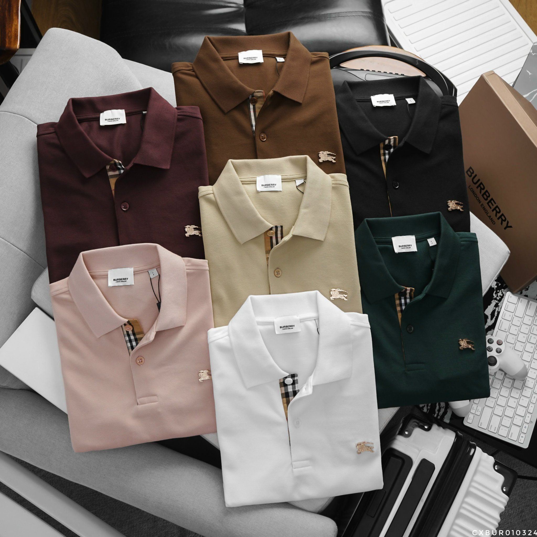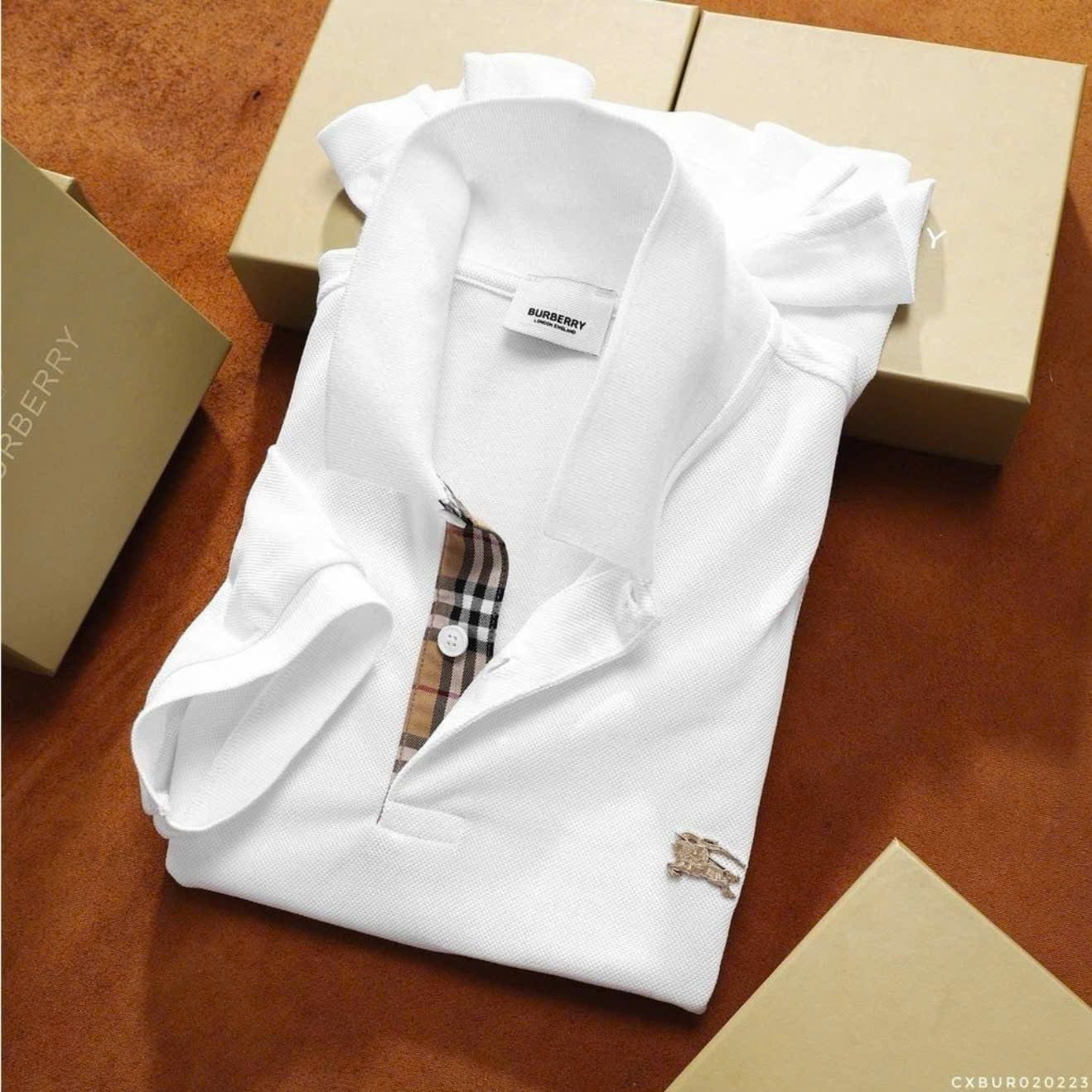 Áo Thun Nam Polo BURBERRY LOGO VÀNG 6 MÀU Form Regular-Fit Vải Dệt Tơ Cao Cấp Sang Trọng