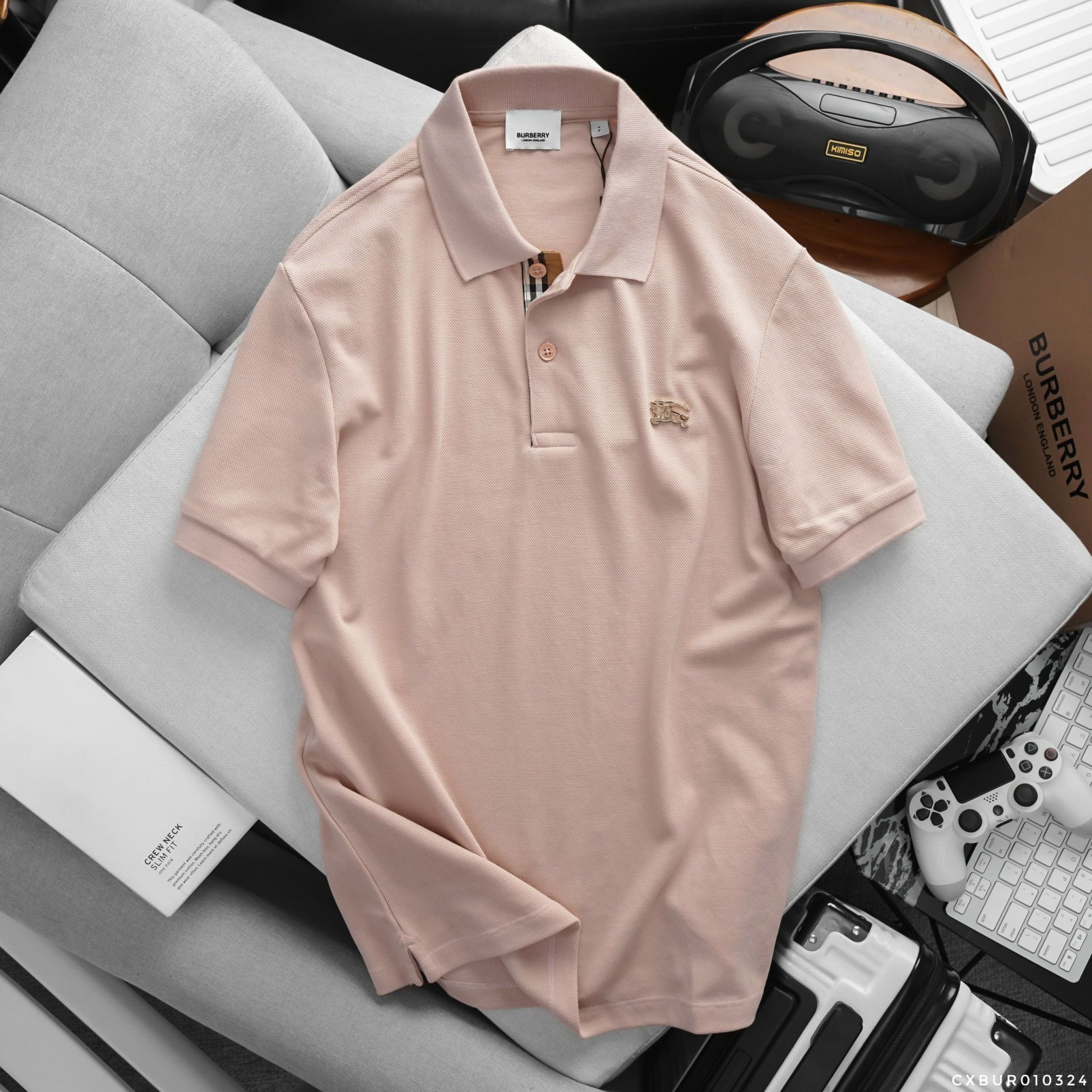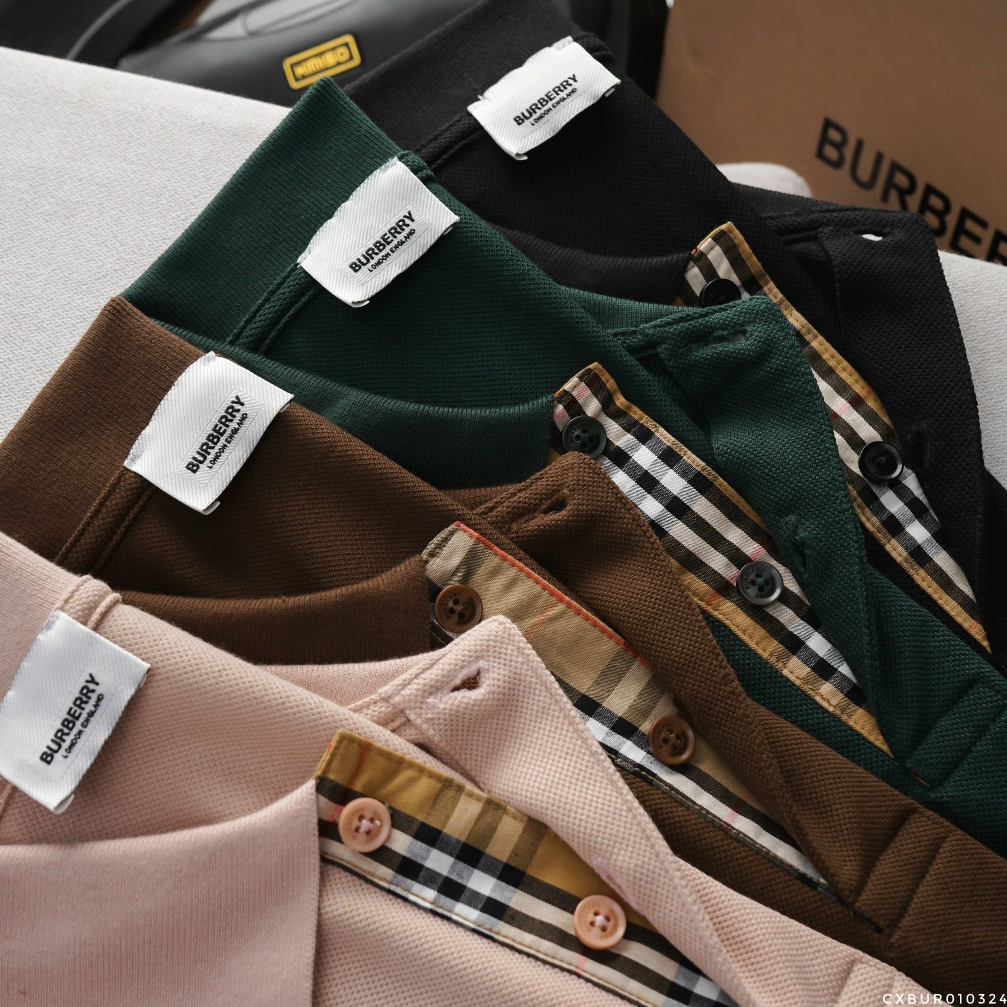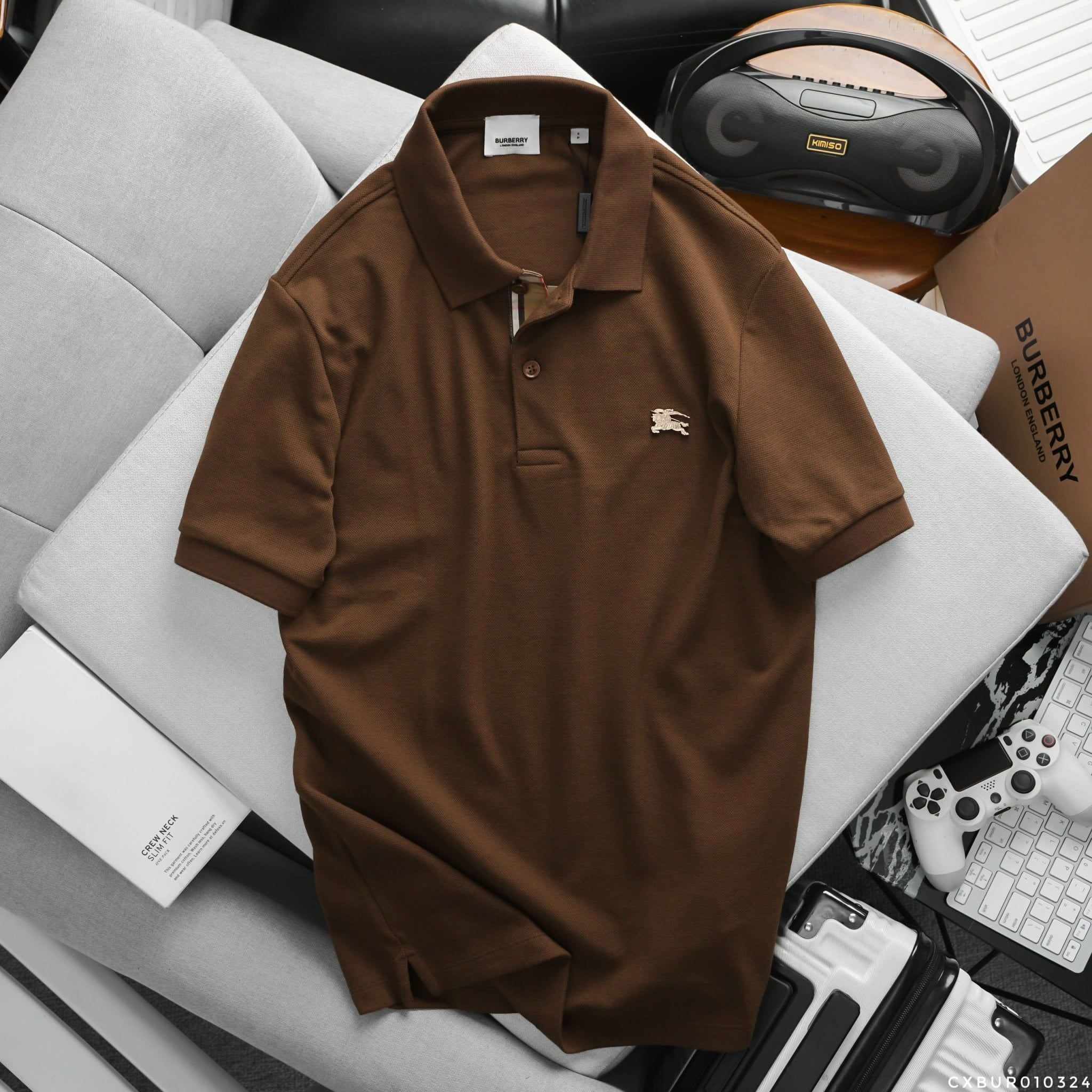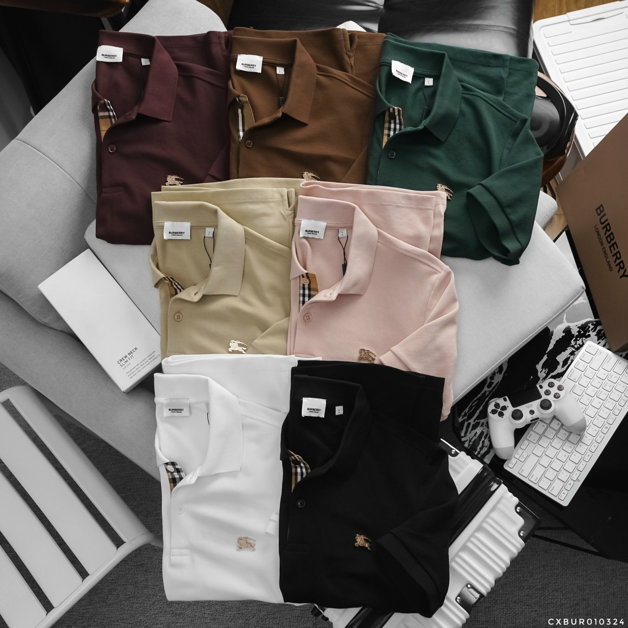 Áo Thun Nam Polo BURBERRY LOGO VÀNG 6 MÀU Form Regular-Fit Vải Dệt Tơ Cao Cấp Sang Trọng