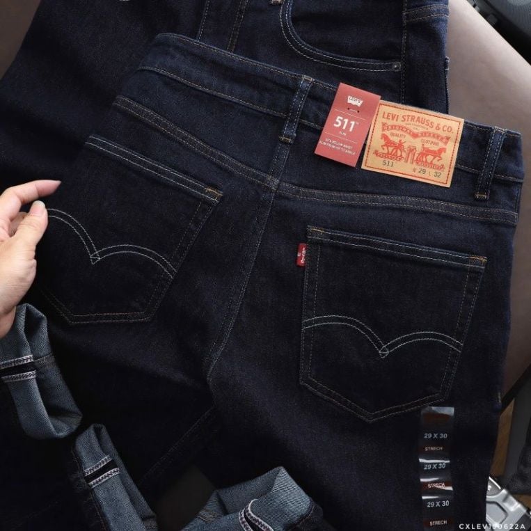 Quần Jean Nam LEVIS 511 BASIC PREMIUM Màu Navy Form SlimFit Mềm Mịn Co Giãn Hàng Xuất Xịn Có Big Size