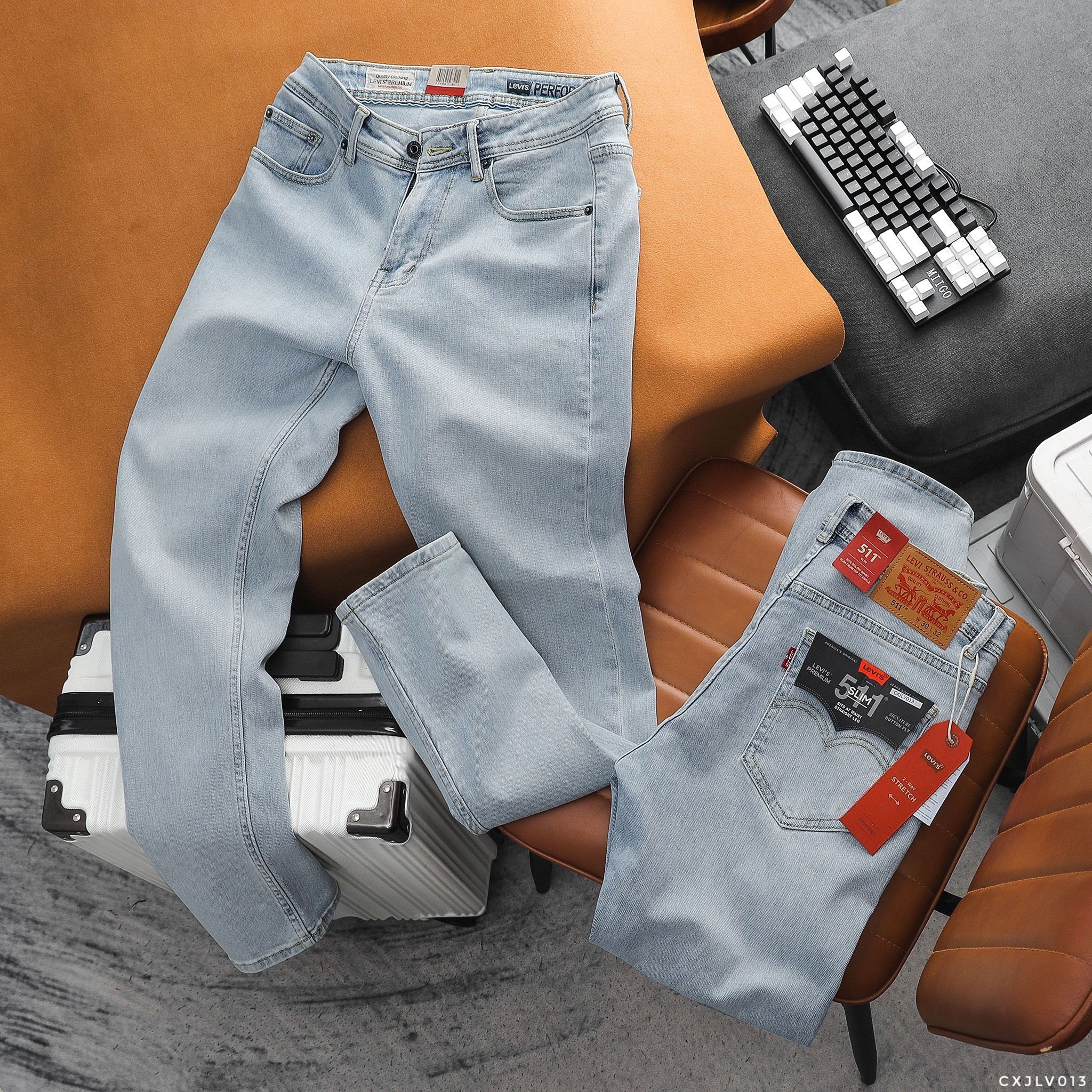 Quần Jean Nam LEVIS 511 PREMIUM DÁNG DÀI CXJLV013 Màu Trắng Xanh Form SlimFit Mềm Mịn Co Giãn Hàng Xuất Xịn Có Big Size