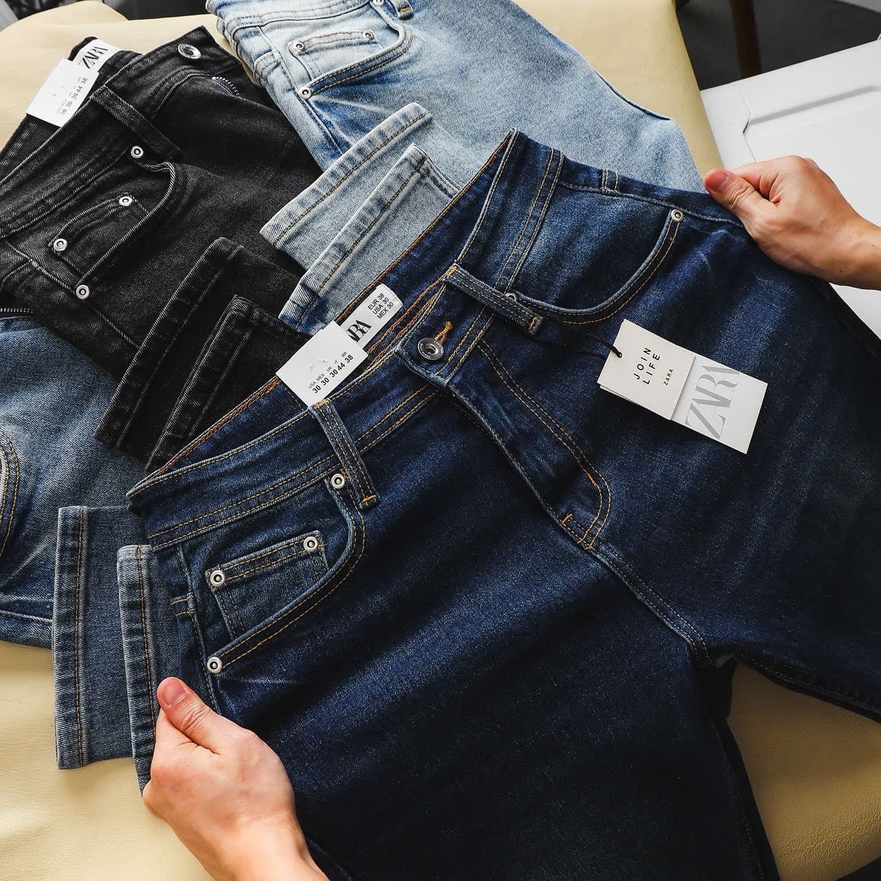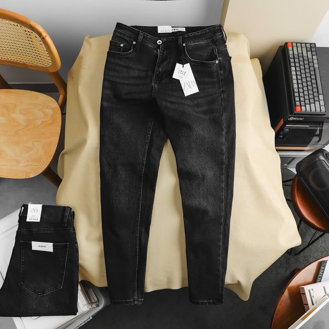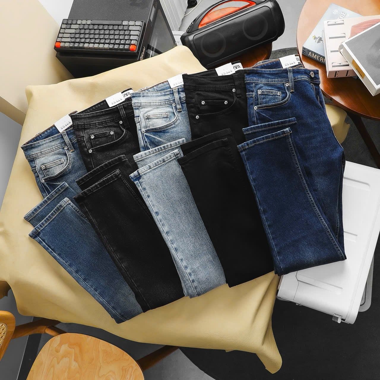 Quần Jean Nam ZARA XANH DENIM VÀ ĐEN Lót Viền Ống Form SlimFit Mềm Mịn Co Giãn Hàng Xịn Chuẩn Hãng CÓ BIG SIZE