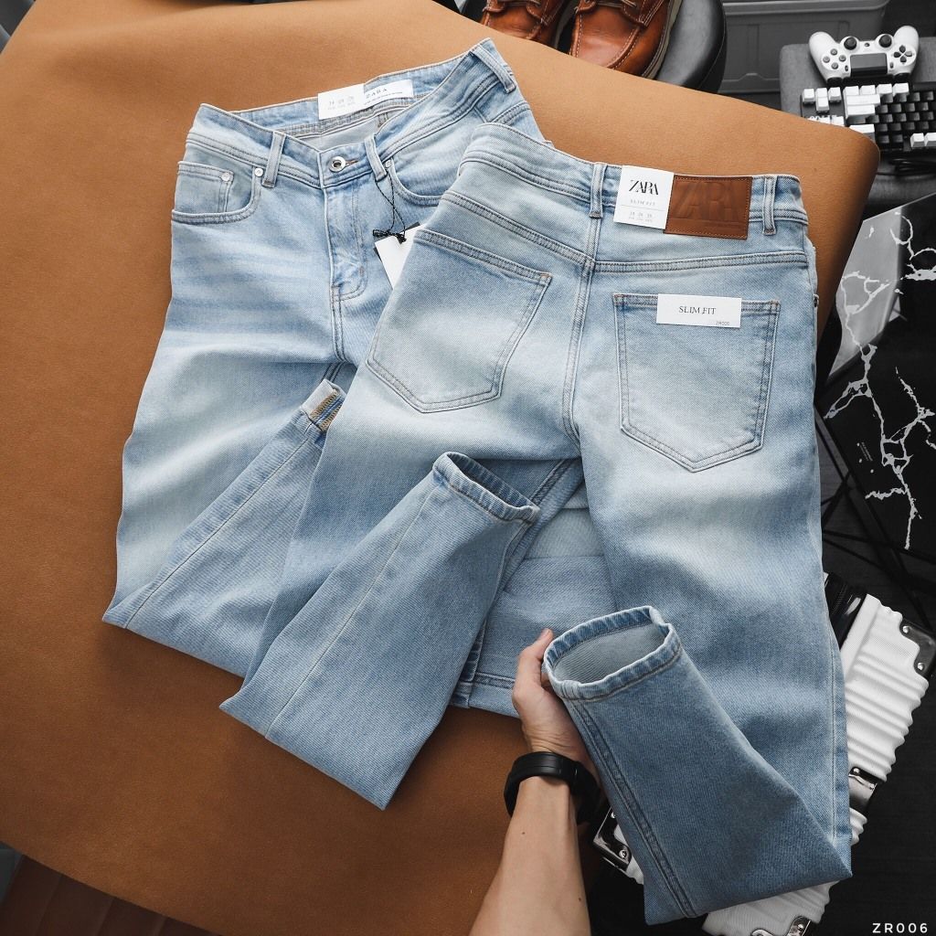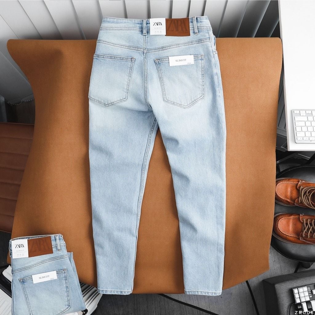 Quần Jean Nam ZARA XANH TRẮNG ZR006 Lót May 3 Viền Xịn Form SlimFit Mềm Mịn Co Giãn Hàng Xuất Xịn Chính Hãng