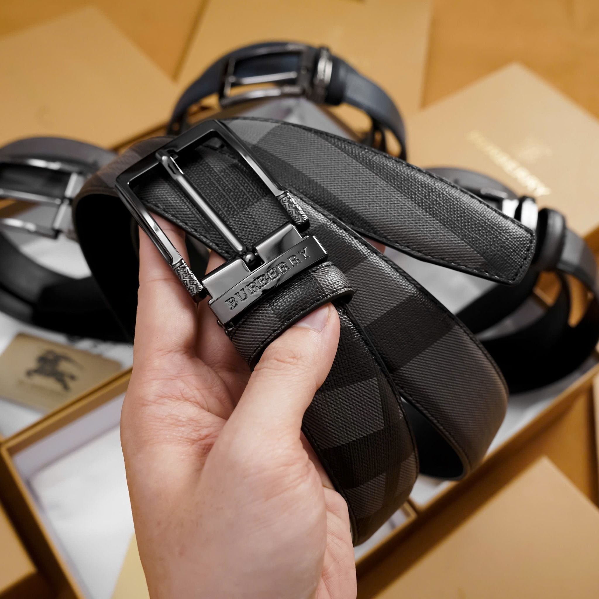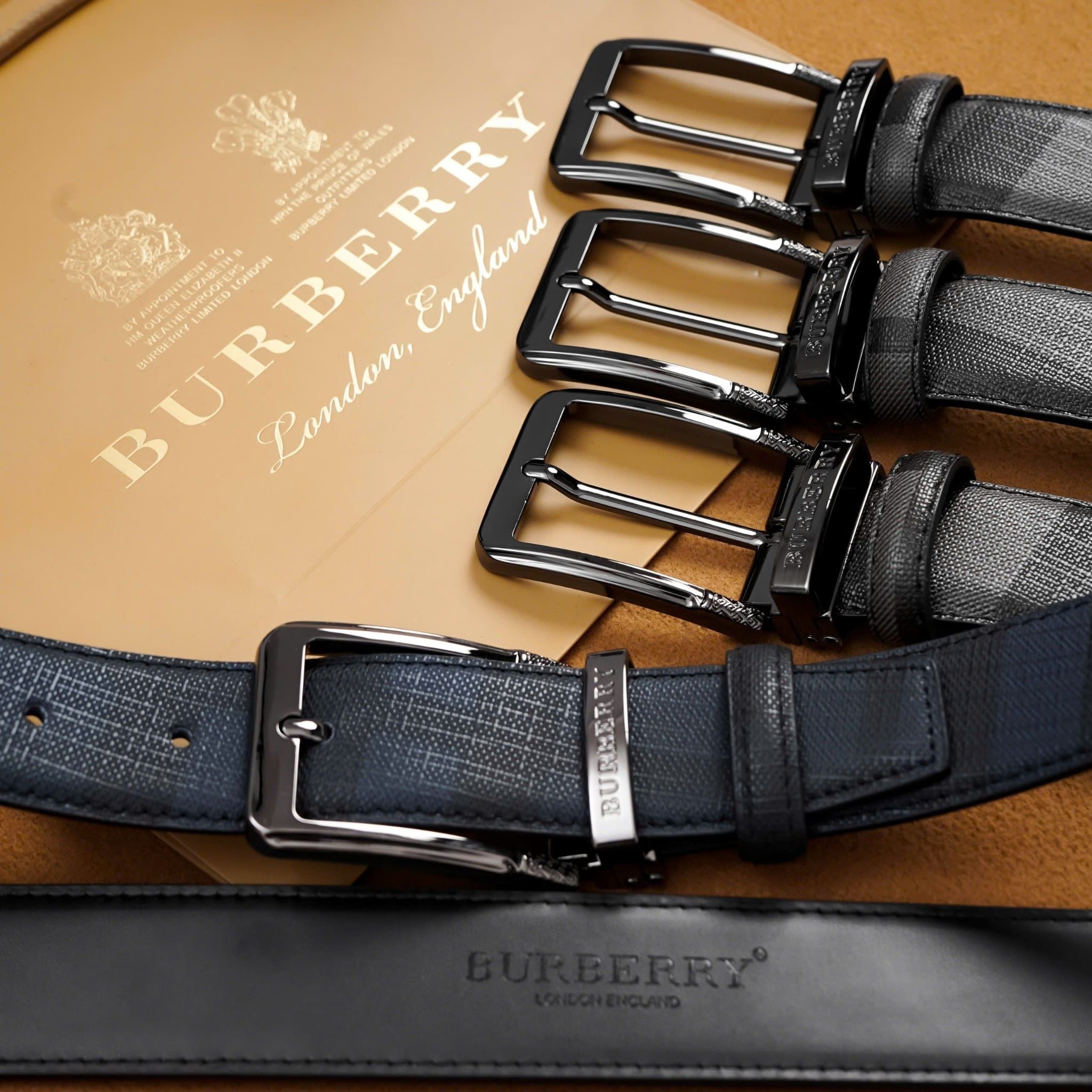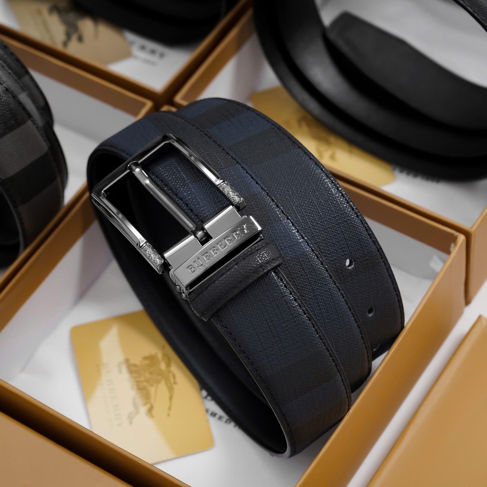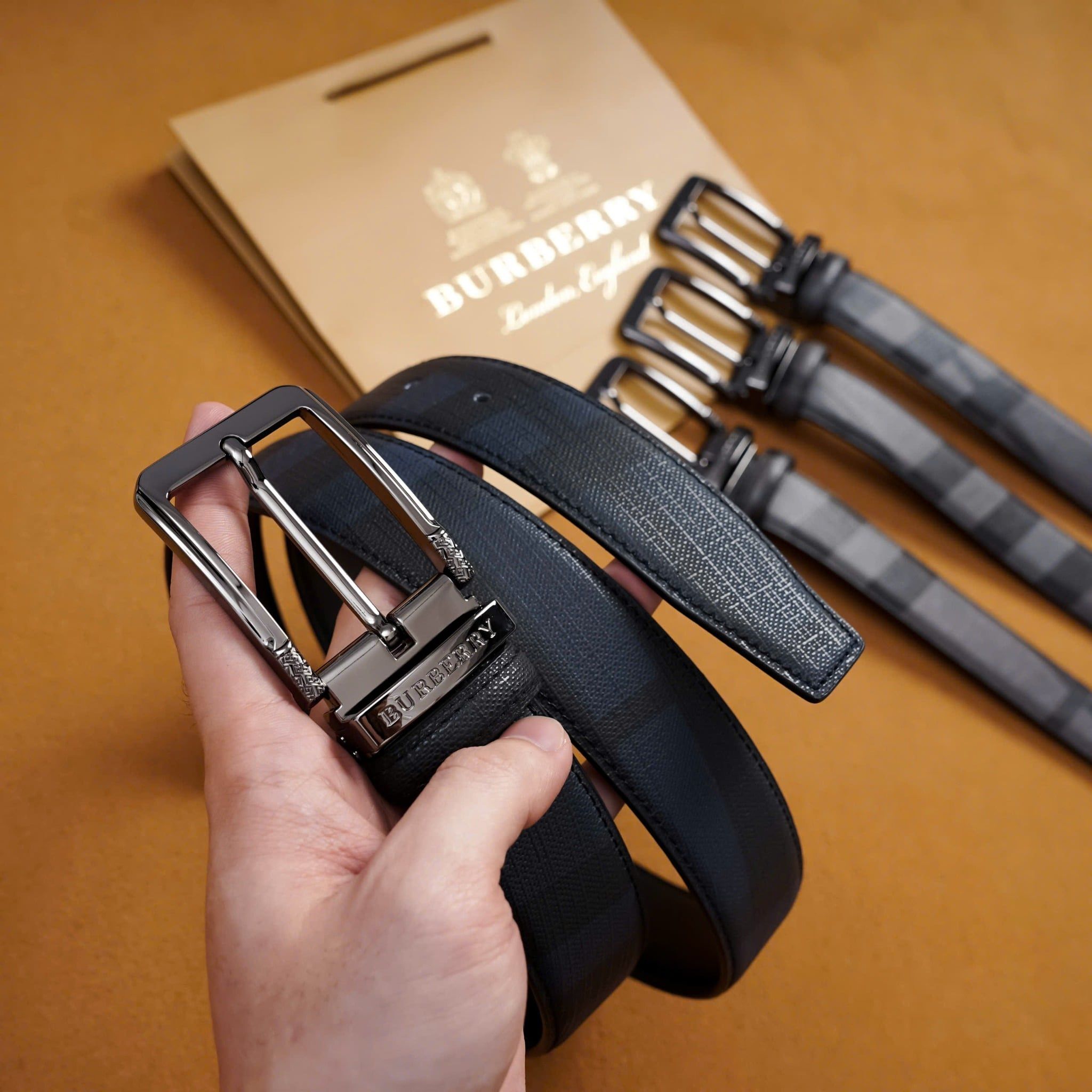 Thắt lưng Nam Burberry Da Bò Thật Mặt Titanium, Nịt nam Sang Trọng - Dây lưng khóa ghim Cao Cấp FullBox