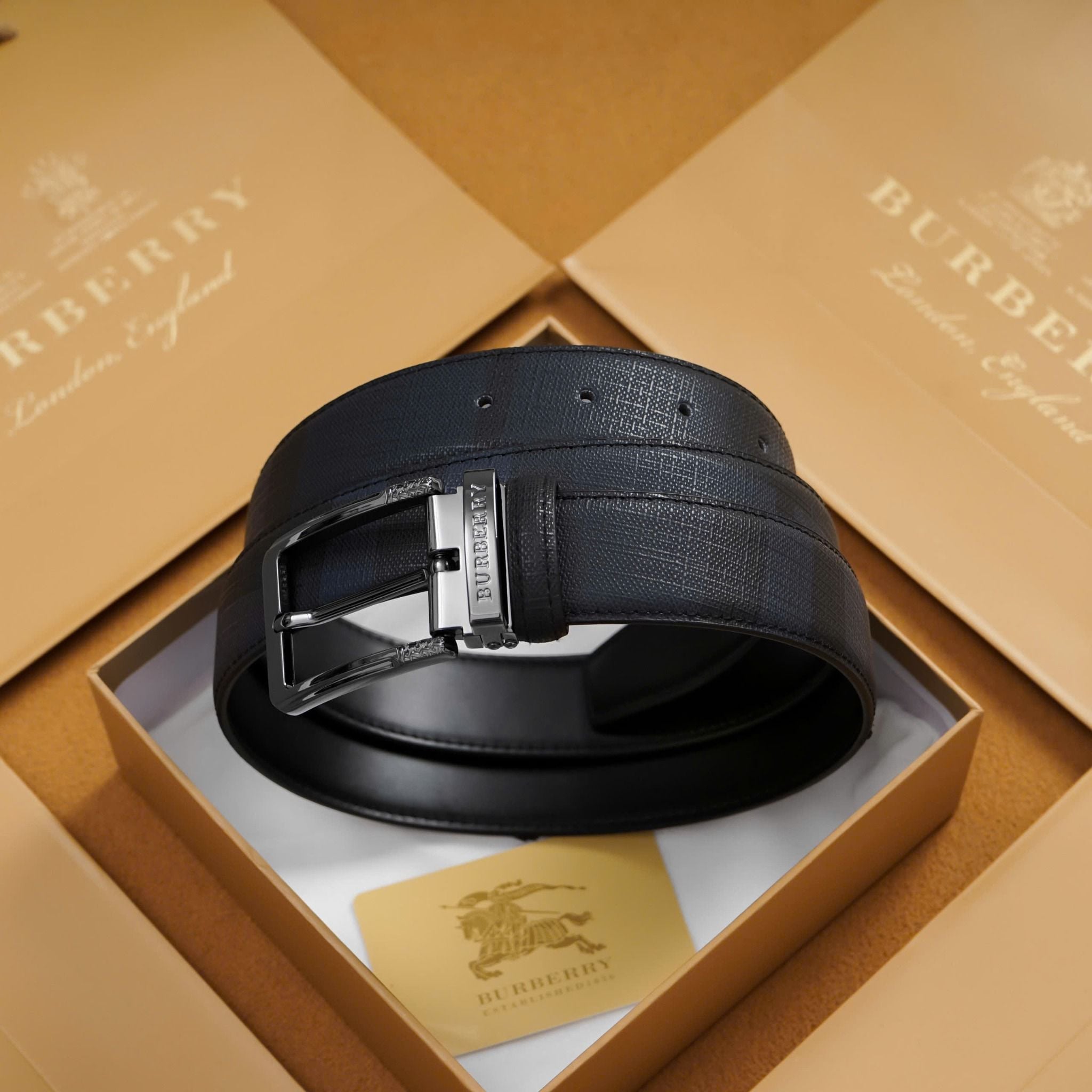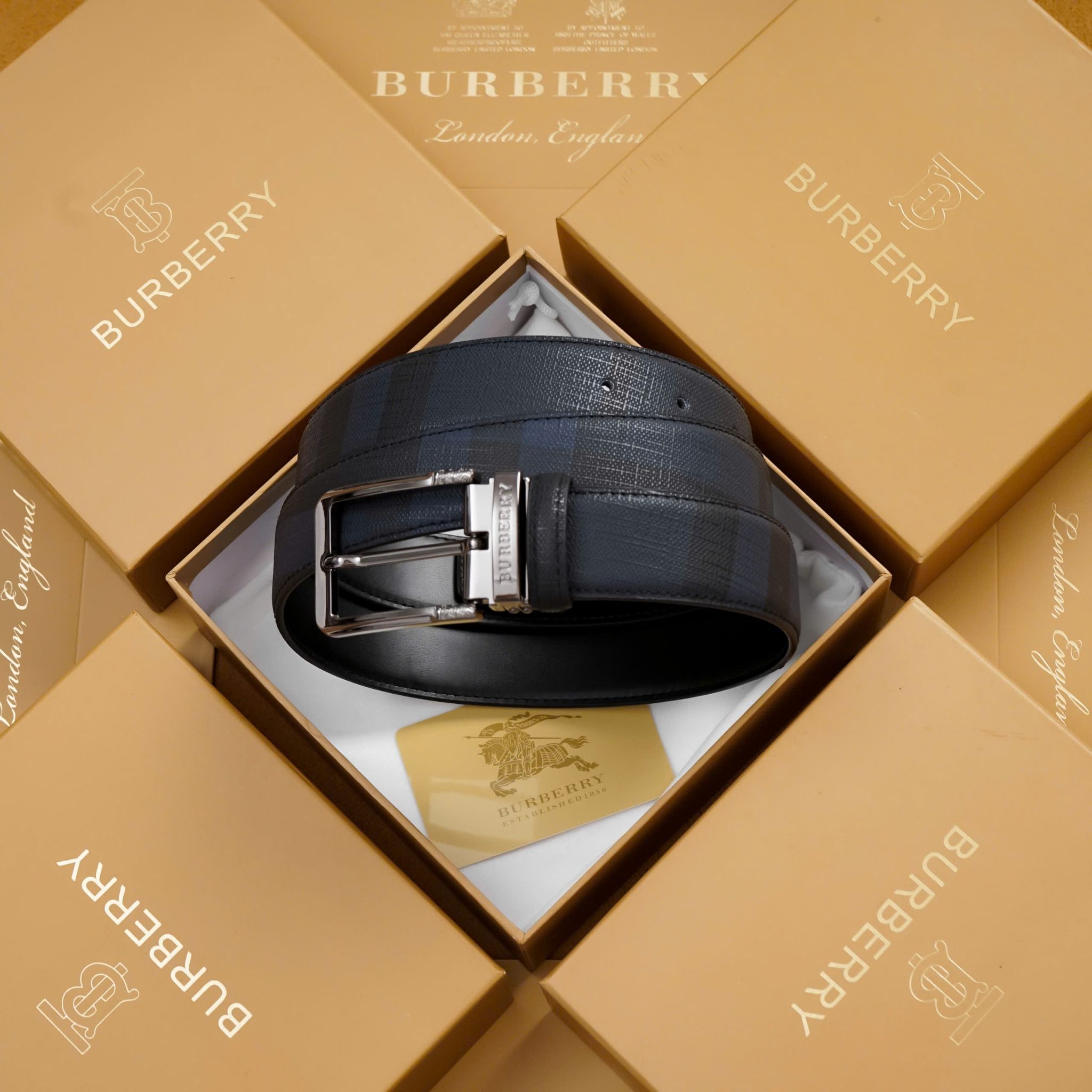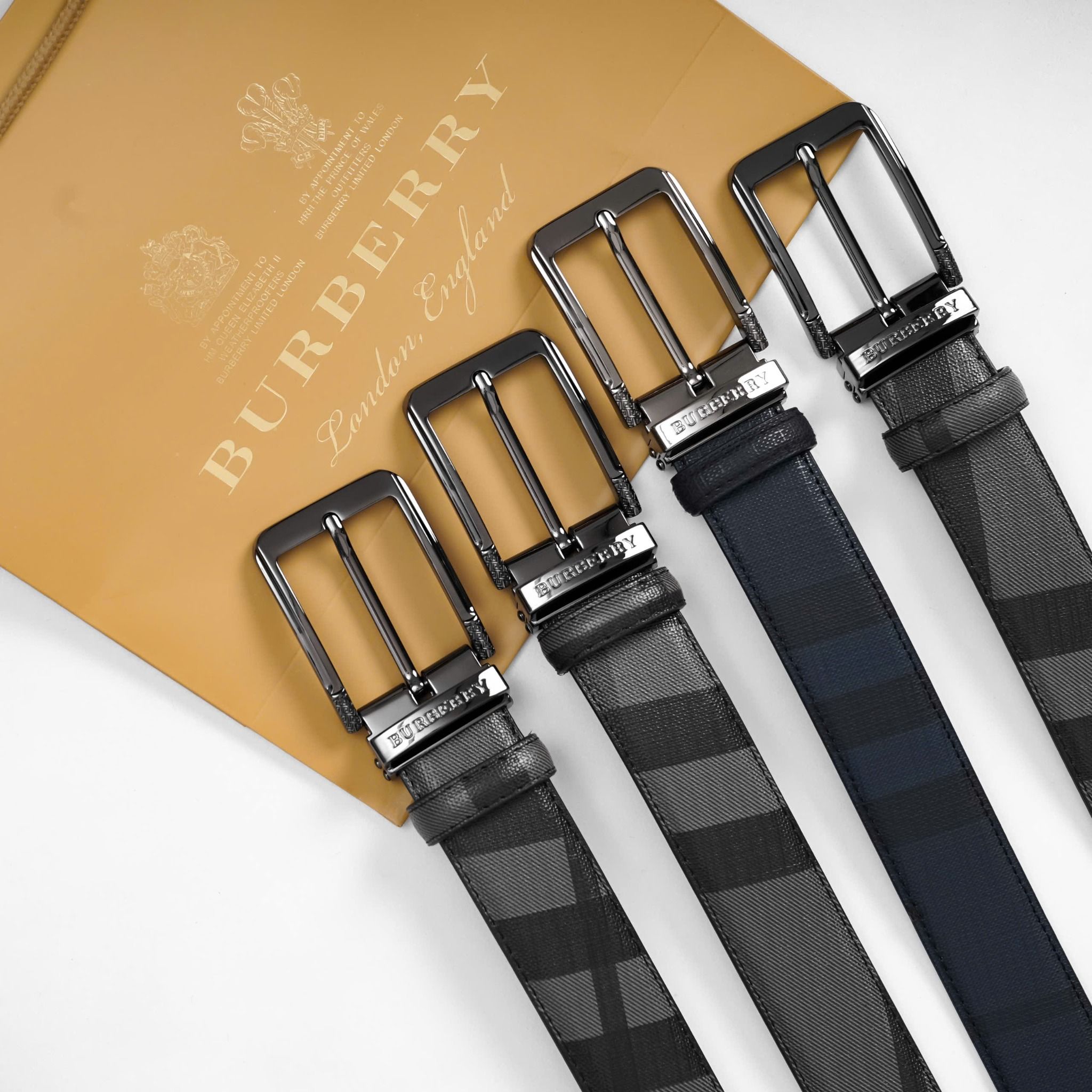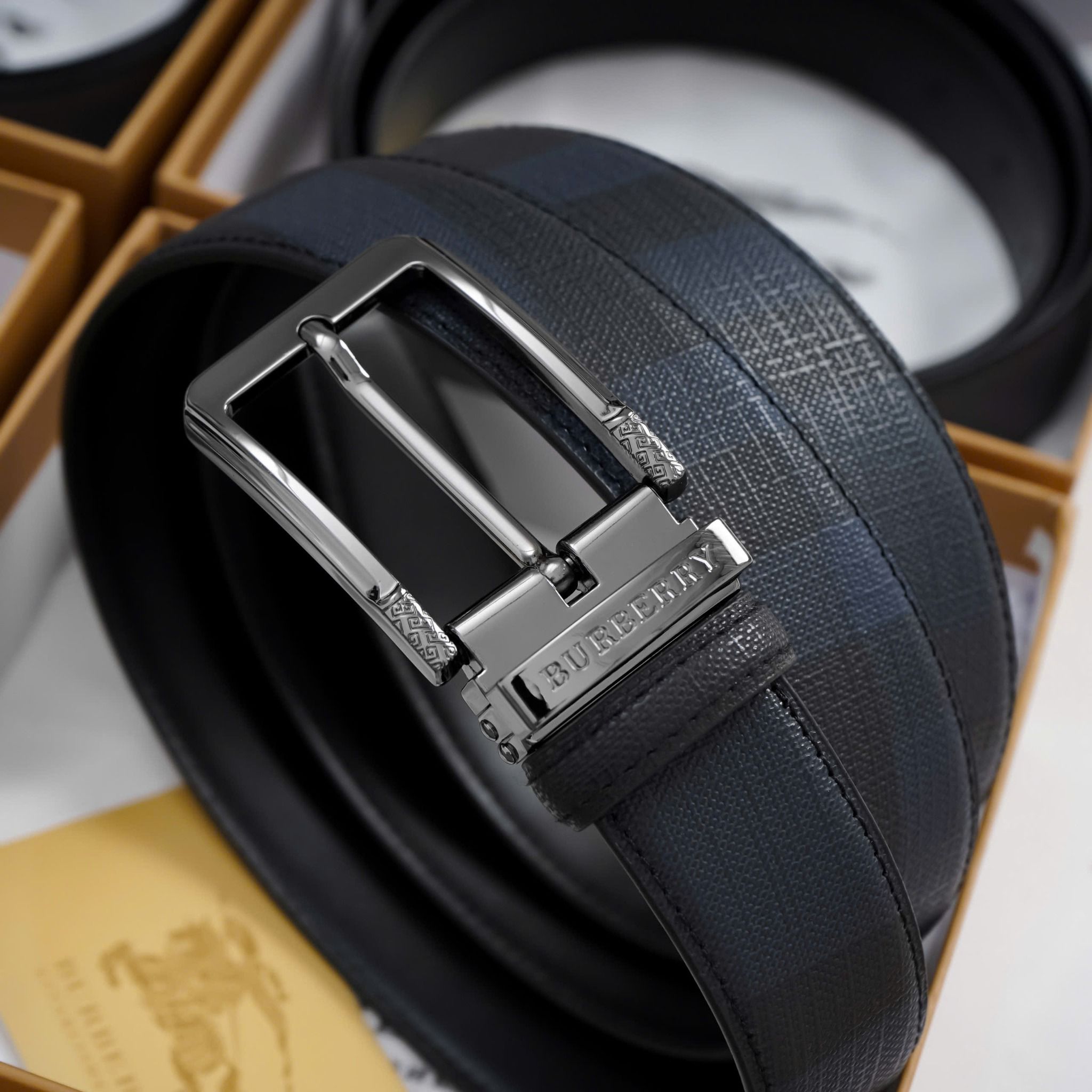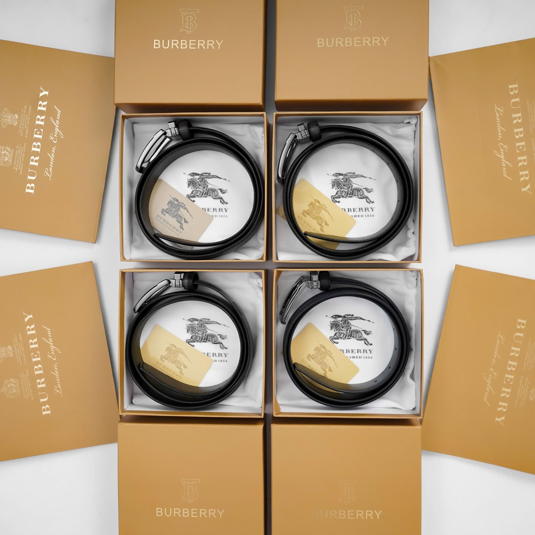Thắt lưng Nam Burberry Da Bò Thật Mặt Titanium, Nịt nam Sang Trọng - Dây lưng khóa ghim Cao Cấp FullBox
