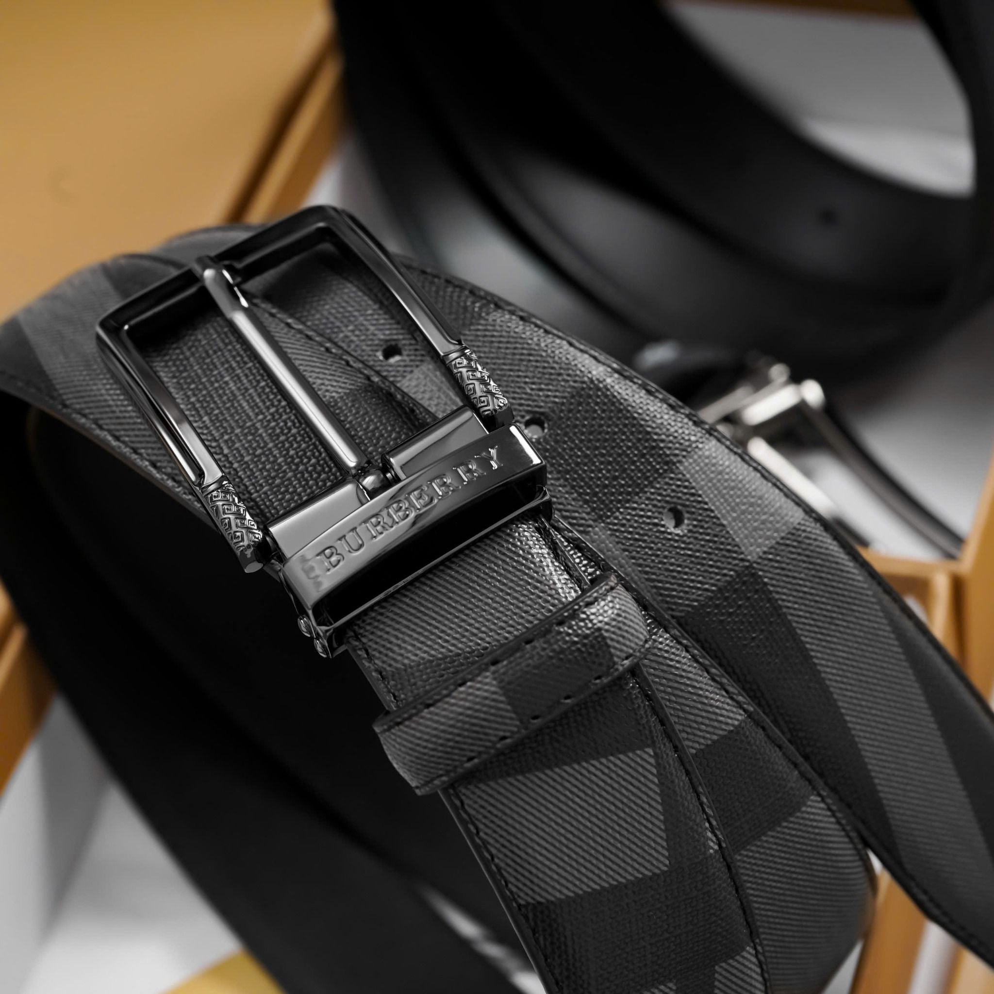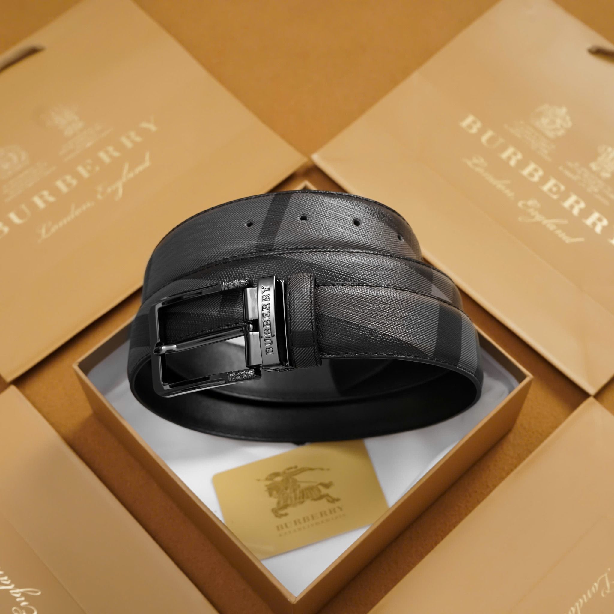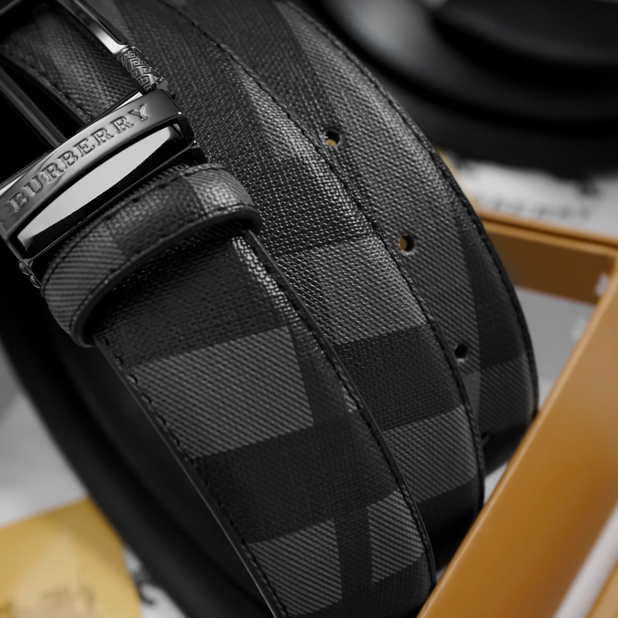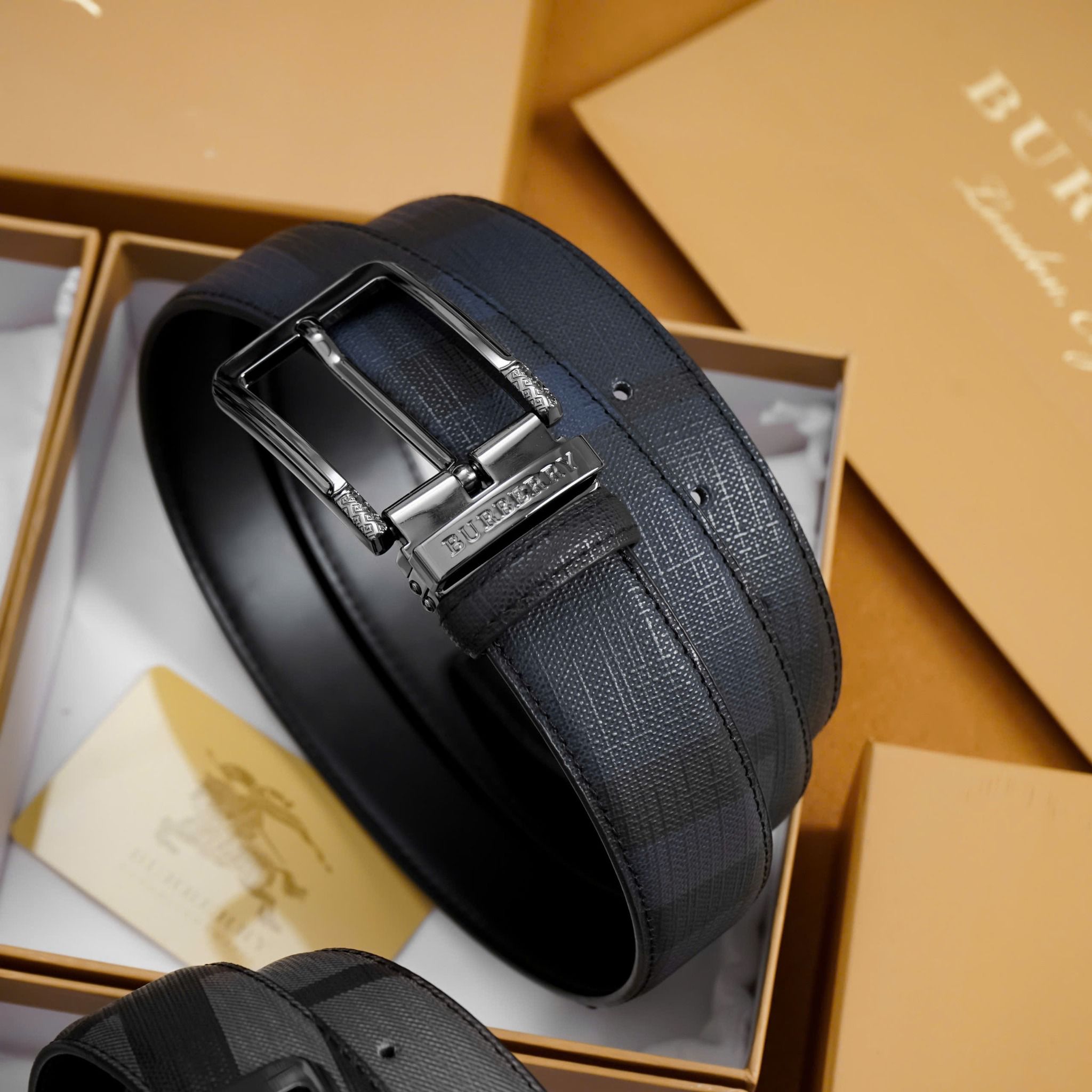 Thắt lưng Nam Burberry Da Bò Thật Mặt Titanium, Nịt nam Sang Trọng - Dây lưng khóa ghim Cao Cấp FullBox